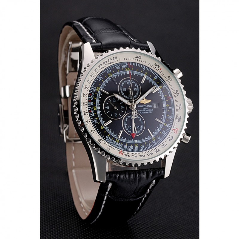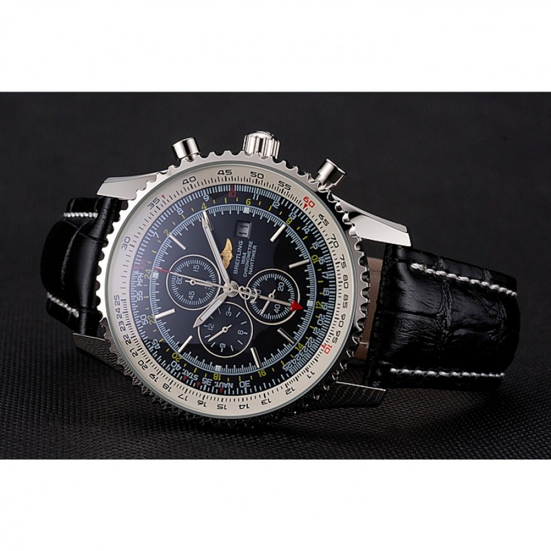 «Replica Breitling Watches: Breitling Navitimer Mundial Dial Negro Cuero Negro Pulsera 622513»
