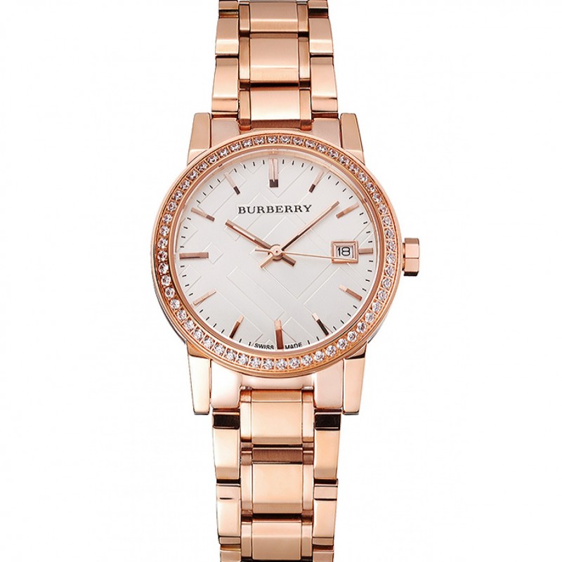 Burberry La Ciudad Blanca Dial Diamond Bisel Caja Oro Rose y pulsera