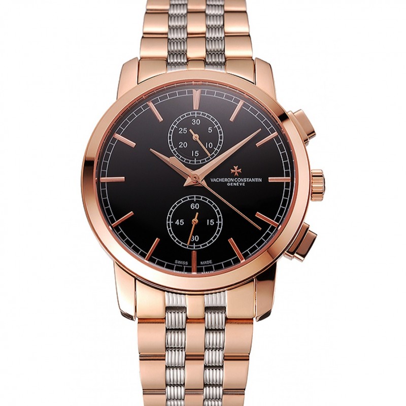 Suiza Vacheron Constantin Patrimonio Tradicional cronógrafo Dial Negro Caja de oro rosa brazalete de dos tonos 1453758