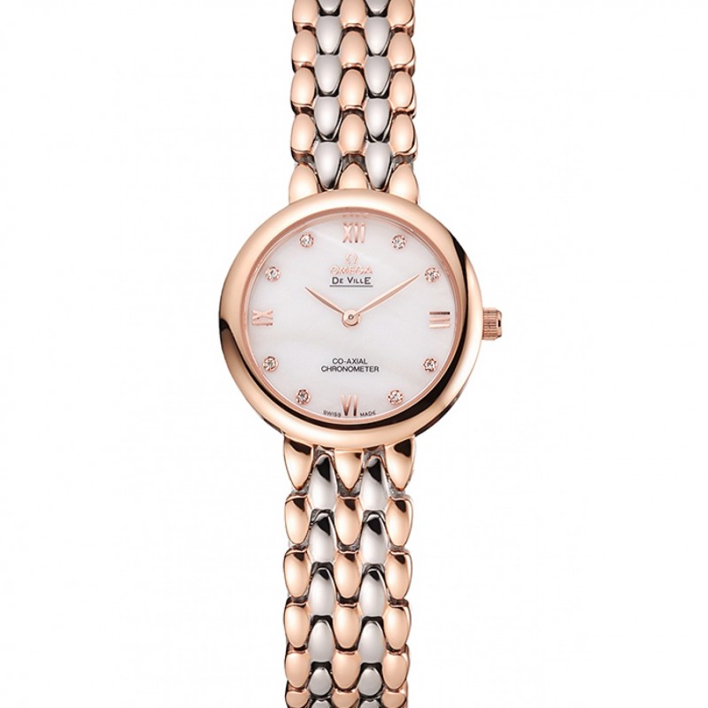 Omega De Ville Prestige No Fecha esfera blanca con diamantes de oro rosa pulsera de dos tonos