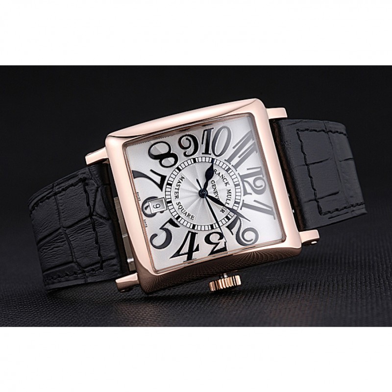 El Franck Muller Maestro Plaza es un reloj que se distingue no solo por su diseño sofisticado, sino también por su meticulosa fabricación. Este modelo, con su elegante dial blanco y su caja negra, combina perfectamente el lujo y la funcionalidad. Equipado con un movimiento de cuarzo japonés Miyota y una caja de 18k oro rosa, este reloj es una verdadera obra maestra que hará que cualquier hombre luzca distinguido en cualquier ocasión. Además, su diseño incluye un bisel plateado de 18k y una corona con el logotipo de Franck Muller grabado, acentuando aún más su atractivo.