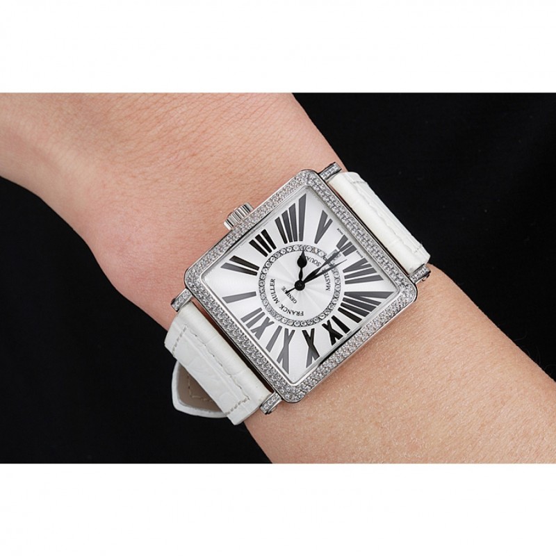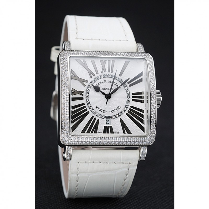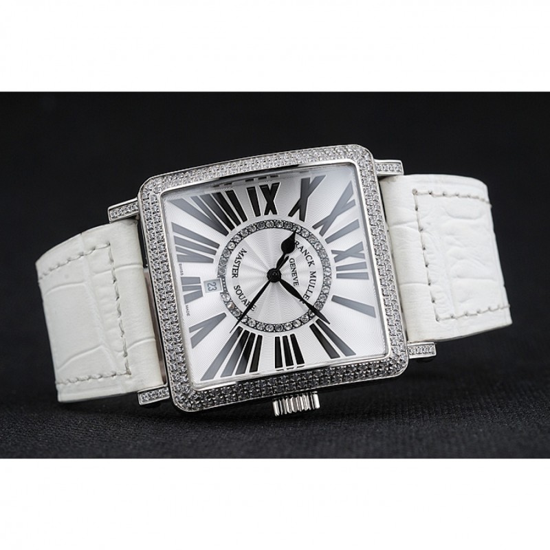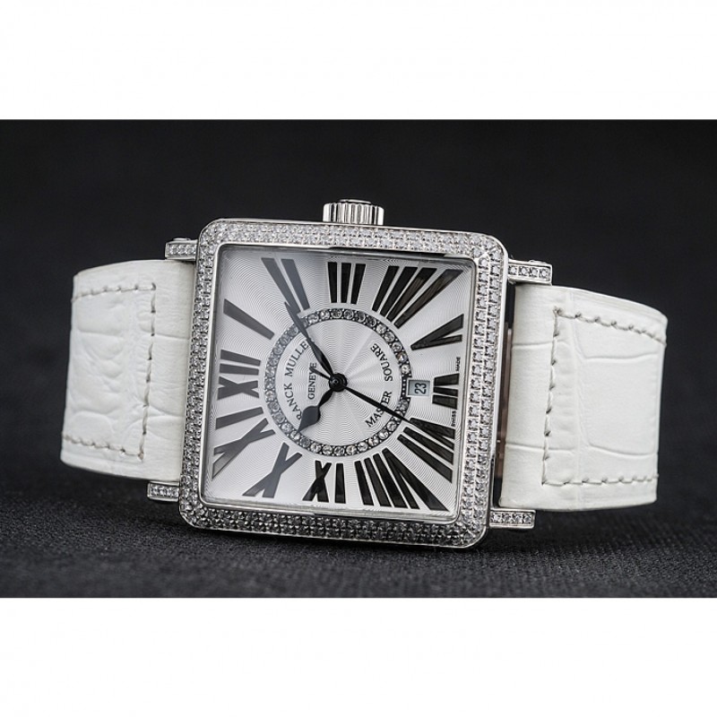pulsera:piel de cocodrilo blancocalor Franck Muller Geneve en relieve correa con Franck Muller grabado de acero inoxidable pulido gancho hebilla de cierre