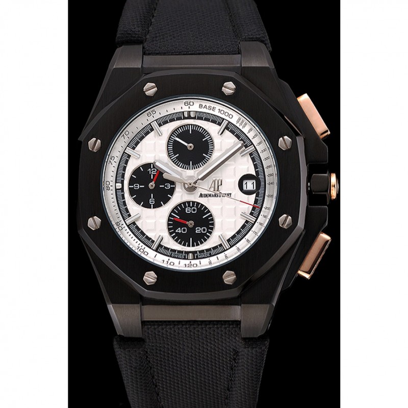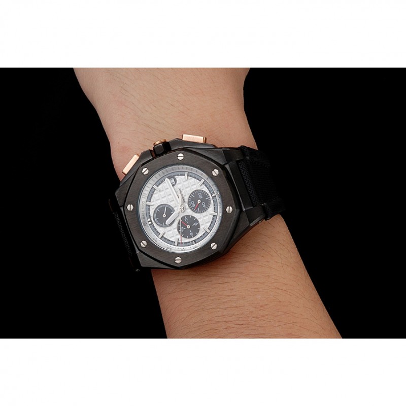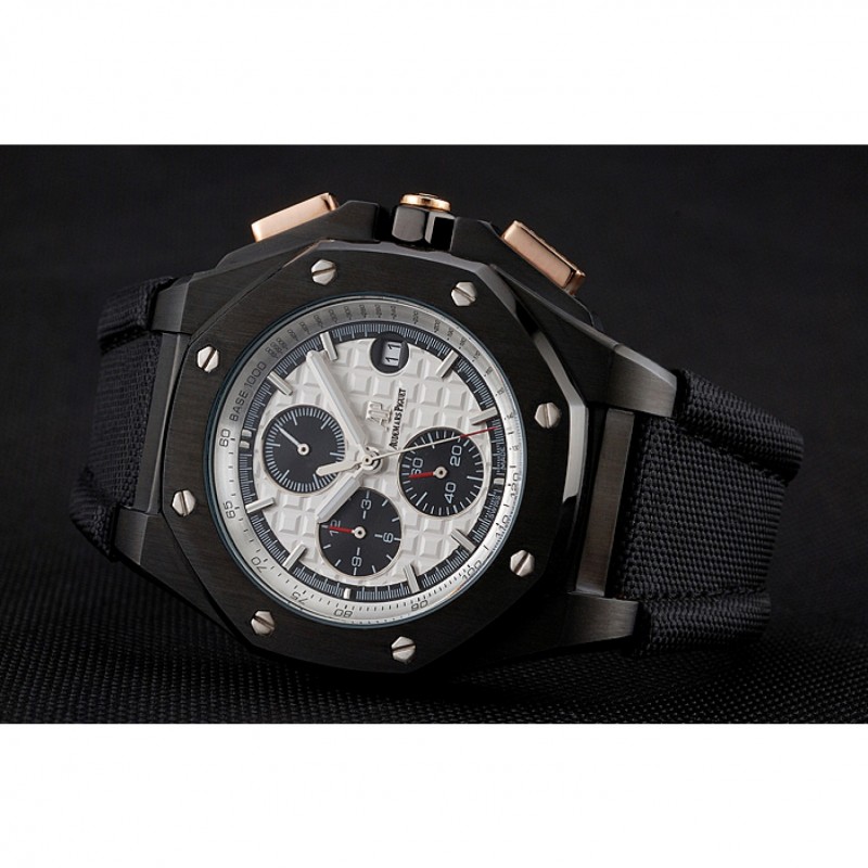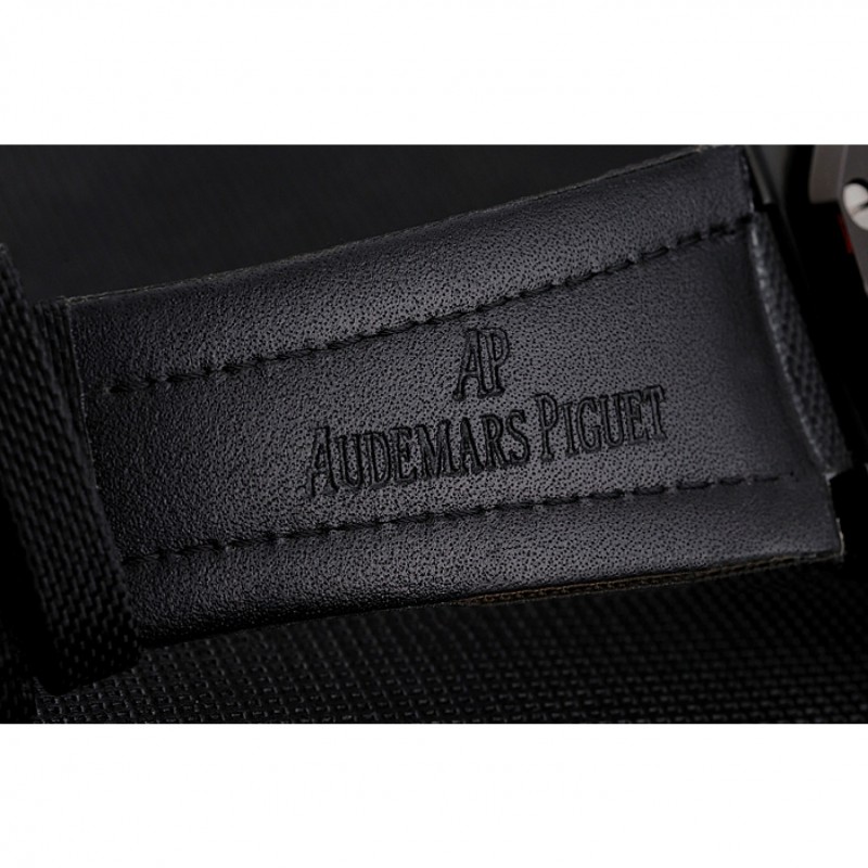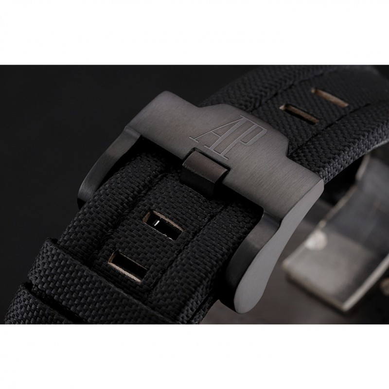 pulsera: correa de tela Negro con logo Audemars Piguet grabado ion-plateado plegable en gancho hebilla corchete