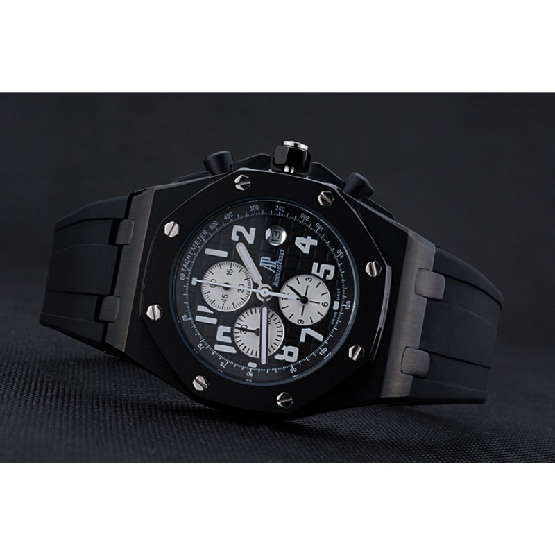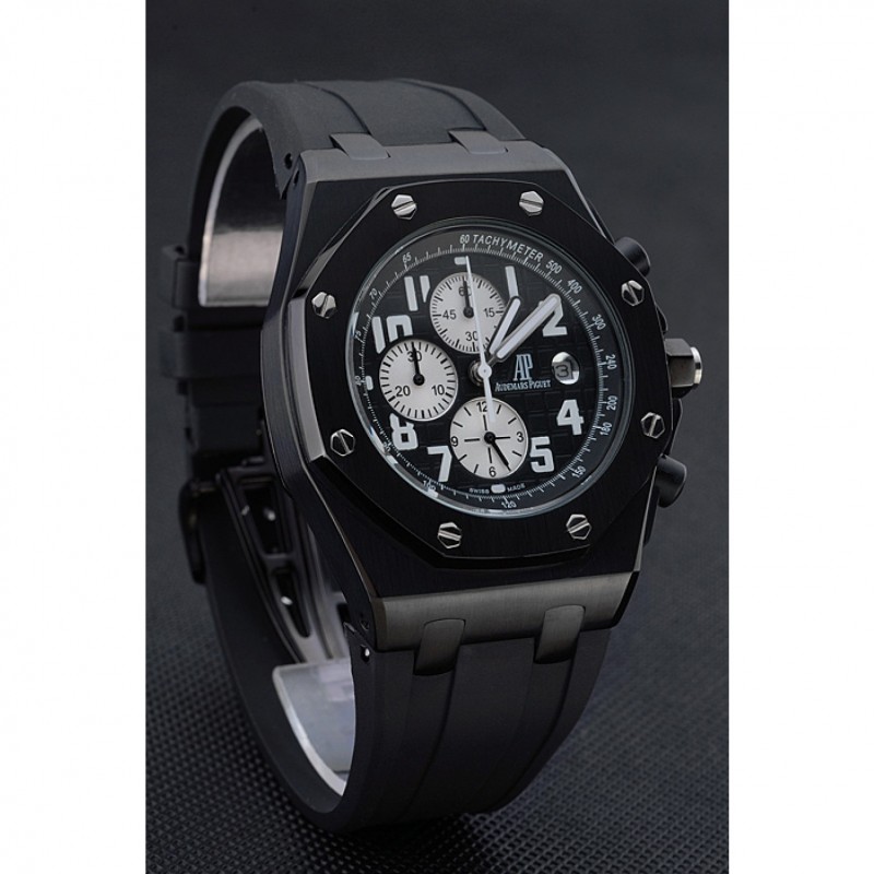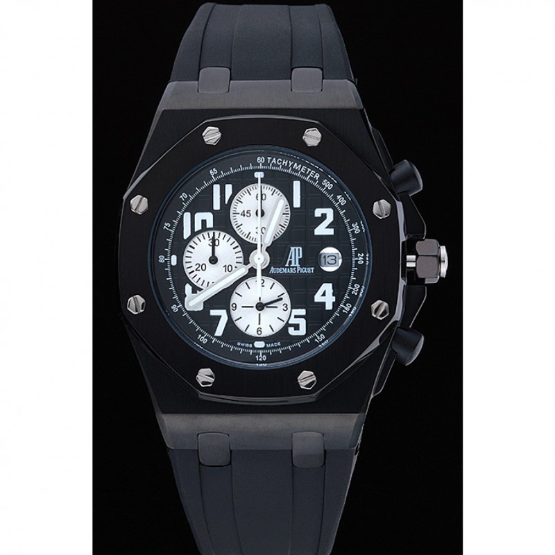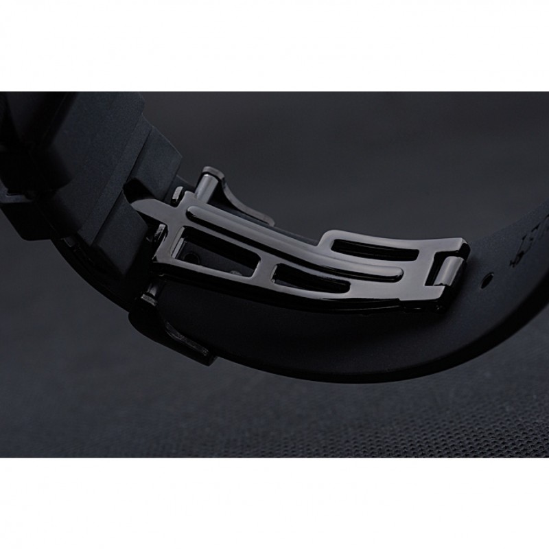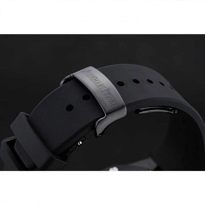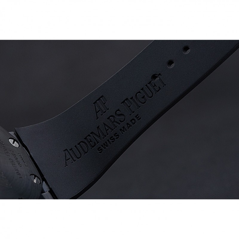 pulsera: correa de caucho Negro con relieve nombre de Audemars Piguet y el logotipo y un Audemars Piguet inscrito flip-sobre el corchete