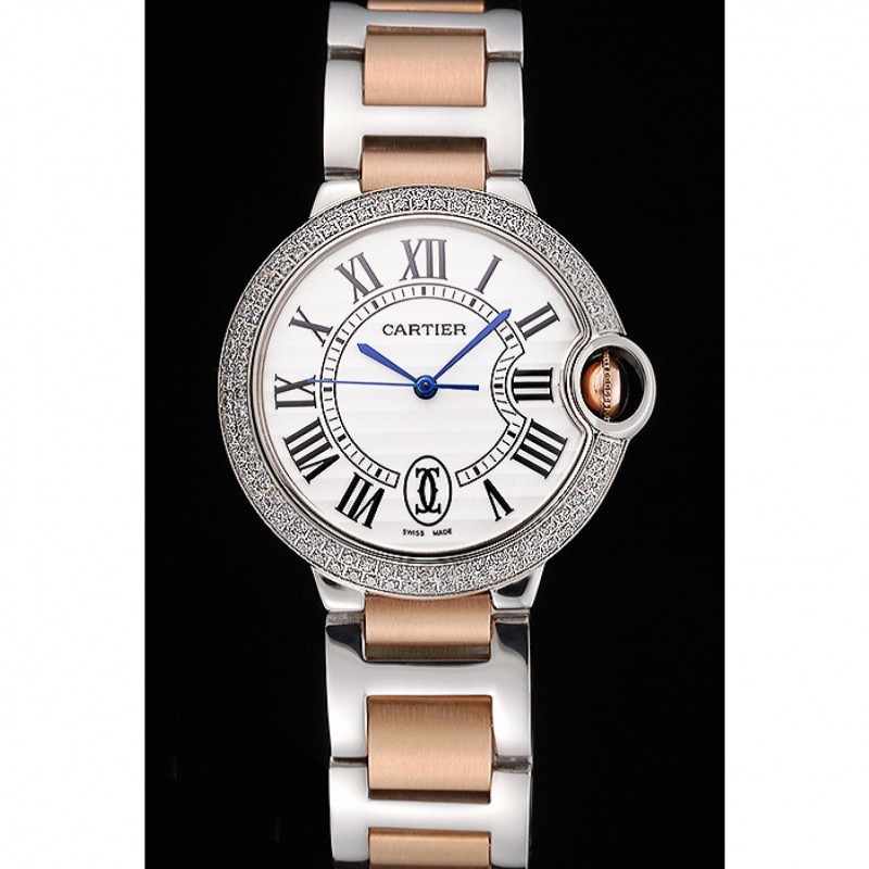 Ballon suizo Azul De Cartier de diamantes caja de acero Esfera Blanca, los números romanos del brazalete de dos tonos 622647