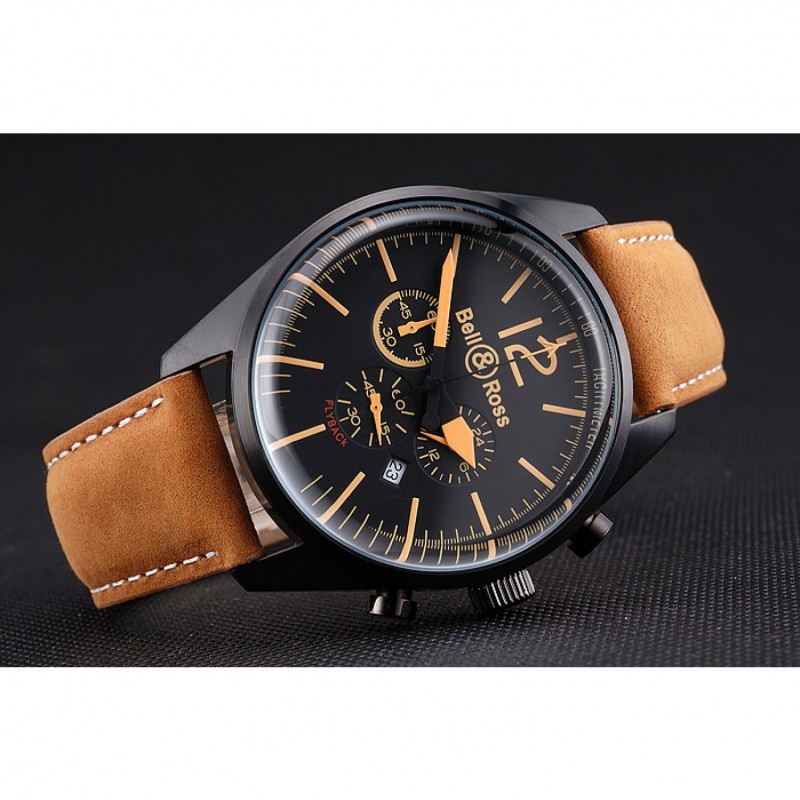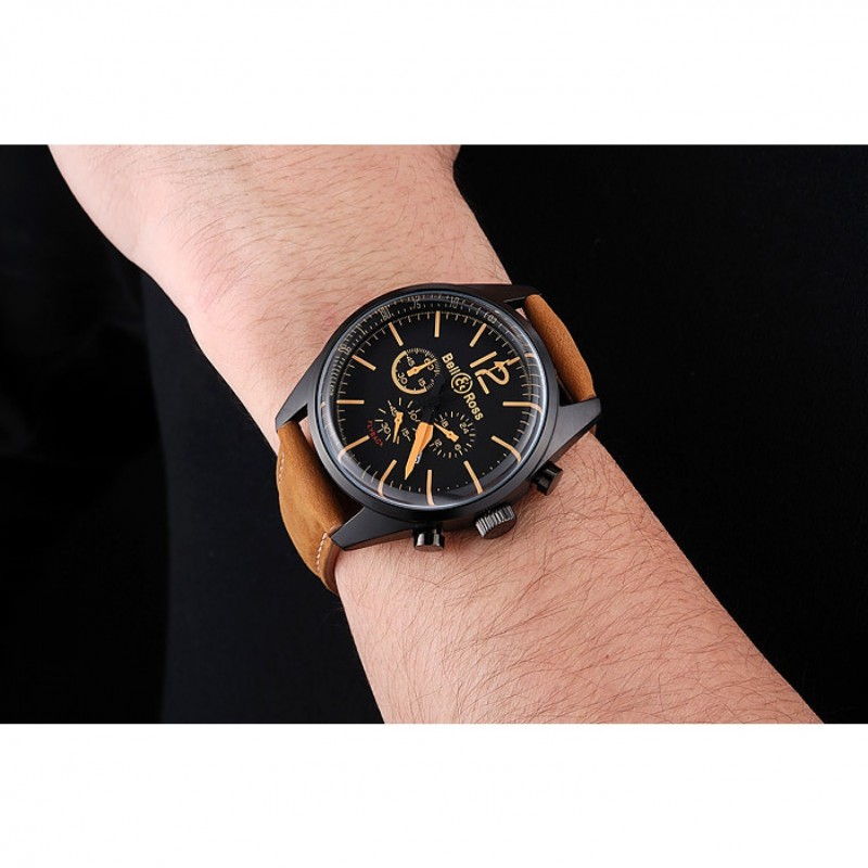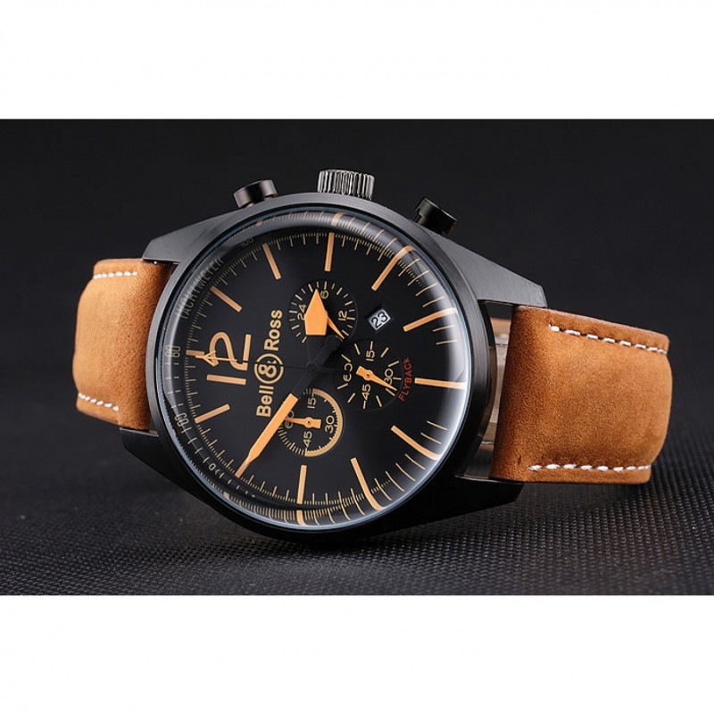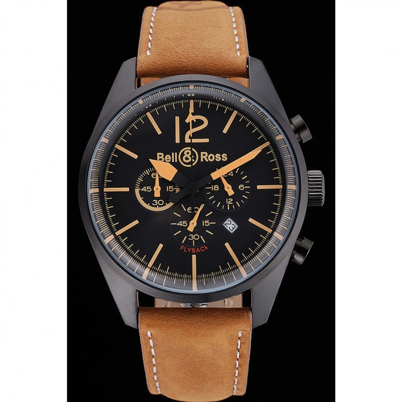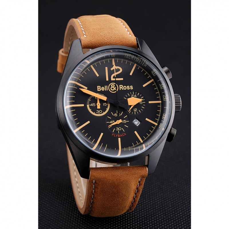 pulsera: Bell&Ross calor en relieve correa de cuero bronceado ante con logo grabado broche de gancho hebilla ion-plateado