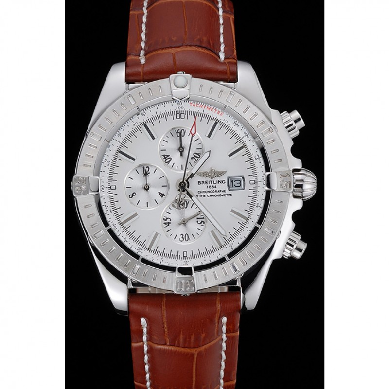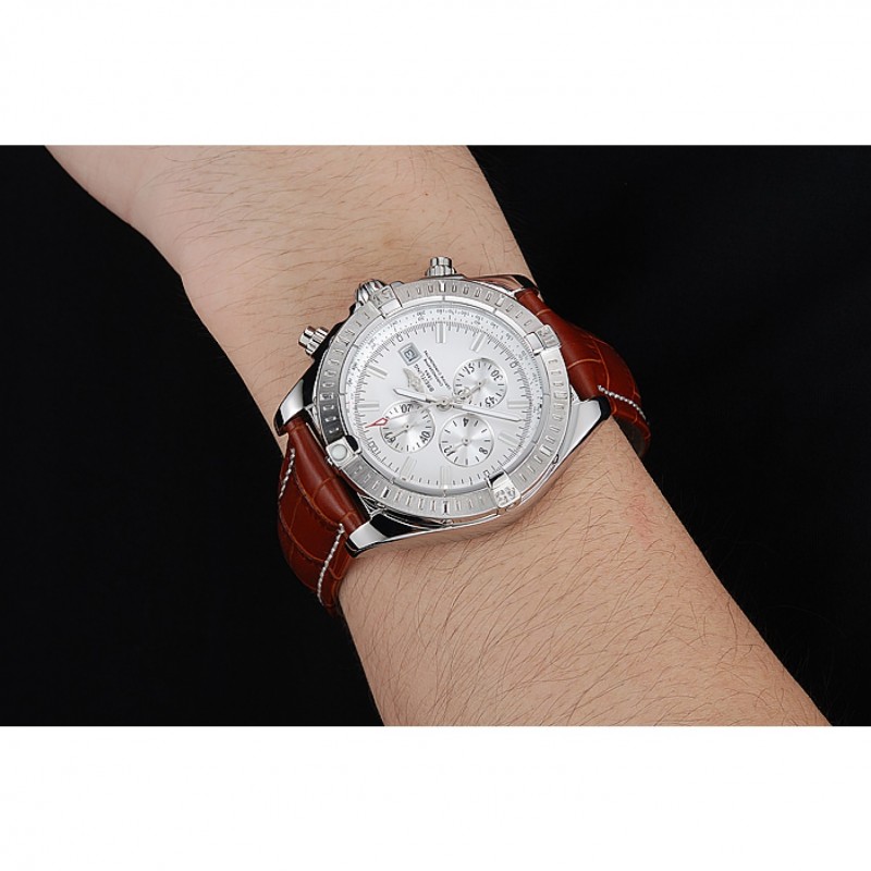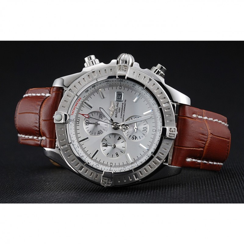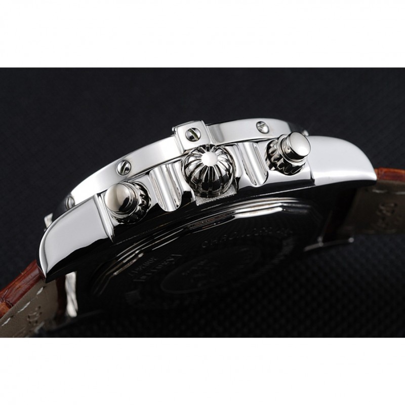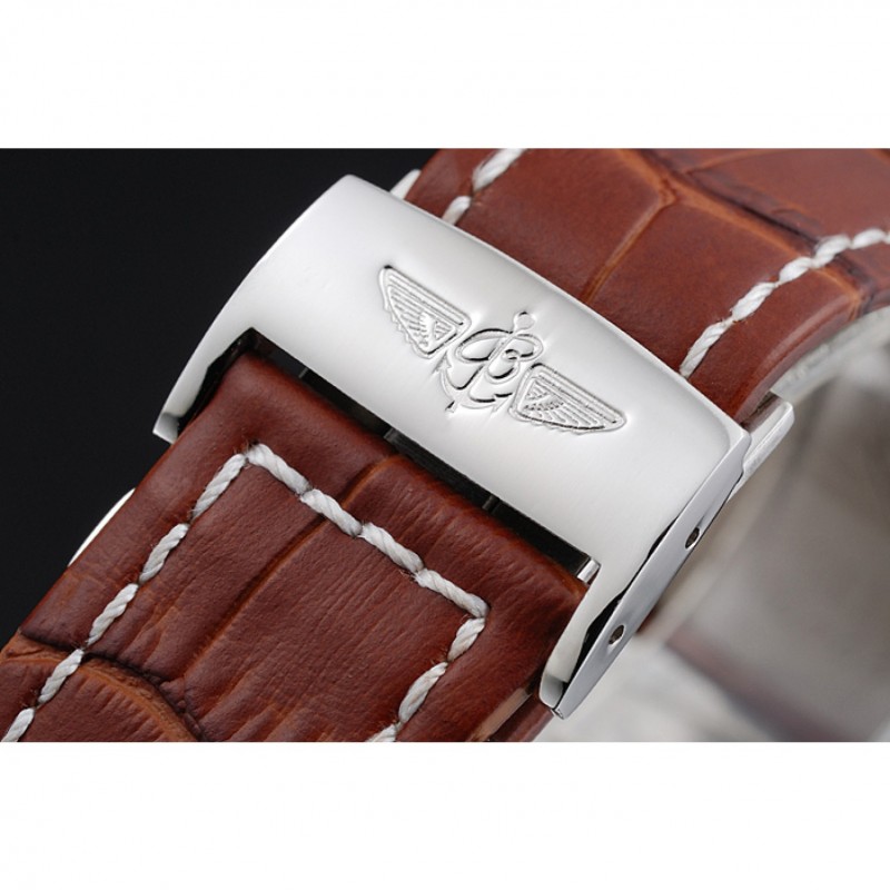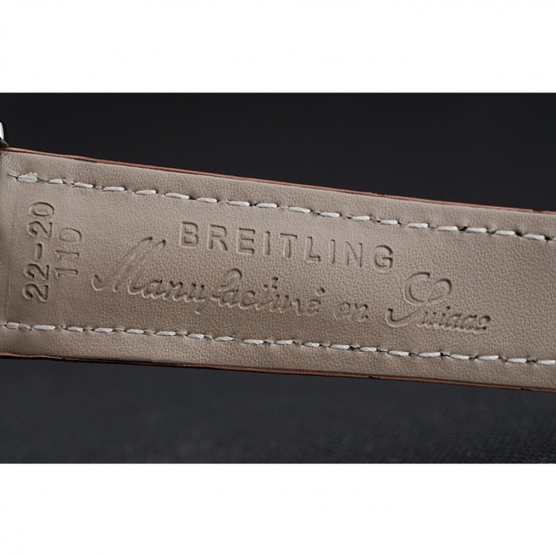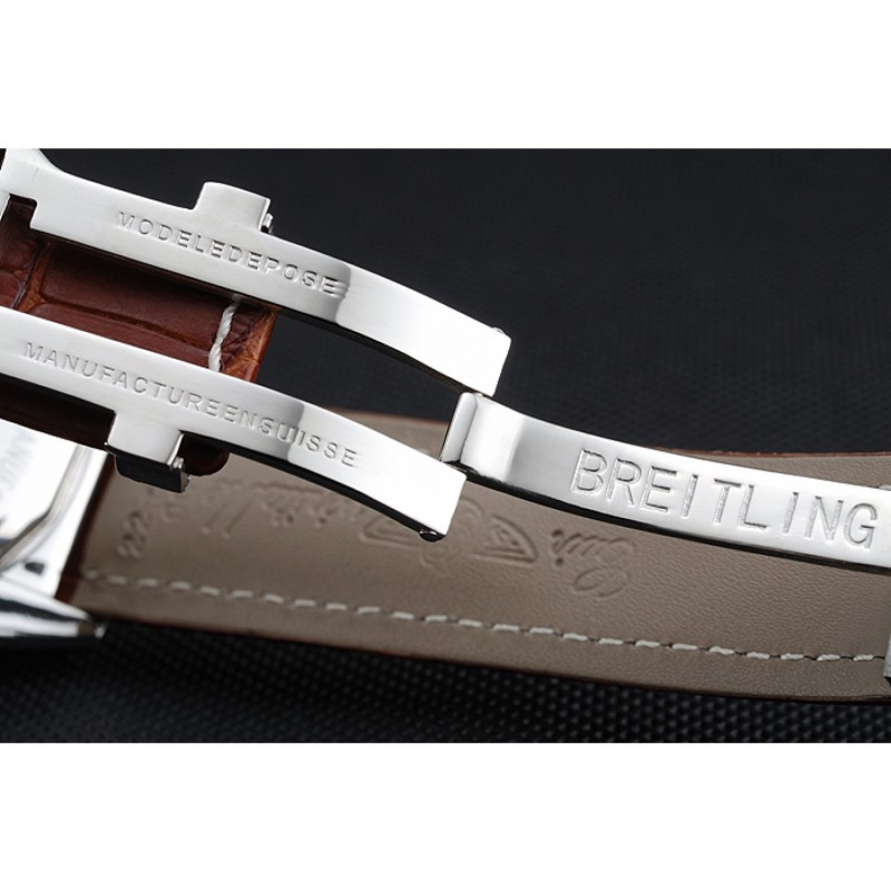 pulsera: Breitling Fabricación en Suisse y el calor logotipo en relieve correa de piel de cocodrilo marrón con costuras de hilo blanco y logo grabado de acero inoxidable pulido plegable en corchete