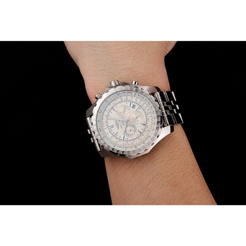 pulsera: finamente vinculados pulida brazalete de acero con código de fecha y Breitling grabado liberación pulsador doble por la hebilla