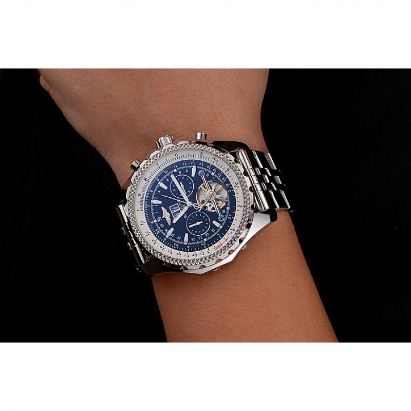 pulsera: finamente vinculados brazalete de acero inoxidable pulido con el código de fecha y Breitling grabado liberación pulsador pliegue en el corchete