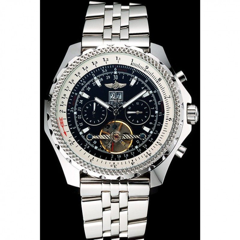 corona: corona de acero inoxidable con el logotipo de Breitling y dos coronas más pequeños a cada lado de la misma