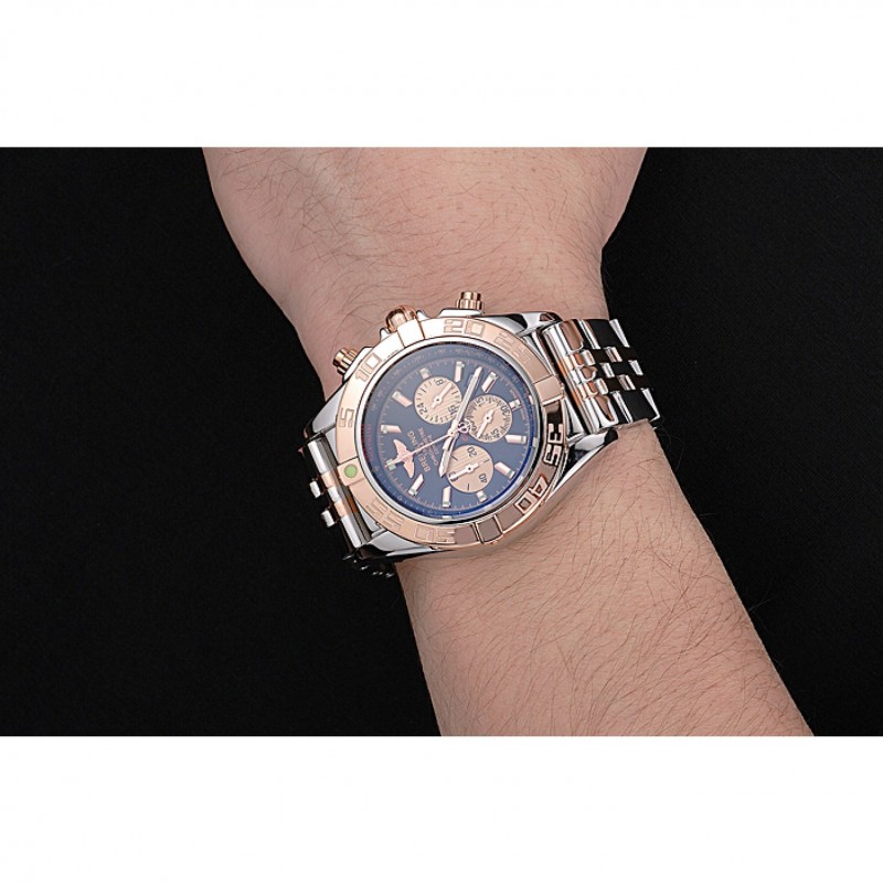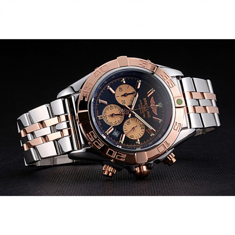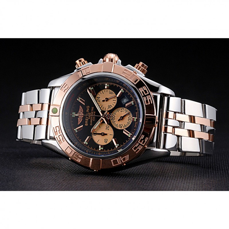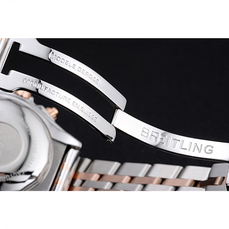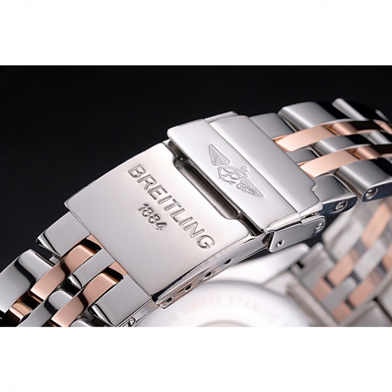 pulsera: acero inoxidable pulido y 18K Rose chapados en oro pulsera de enlace con el logotipo y Breitling 1884 grabado de acero inoxidable pulido plegable en push-liberación corchete
