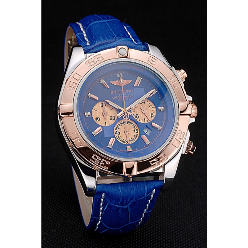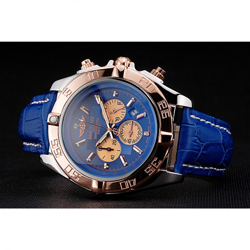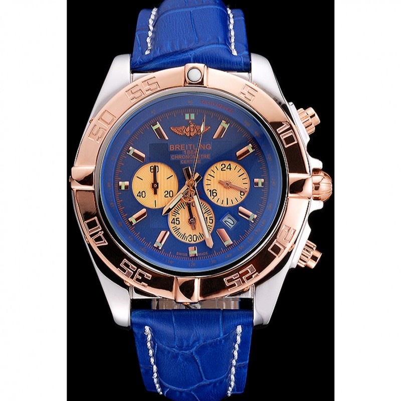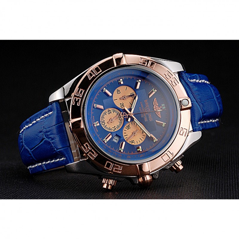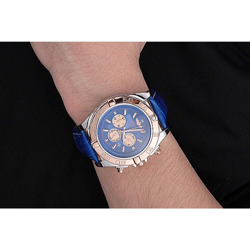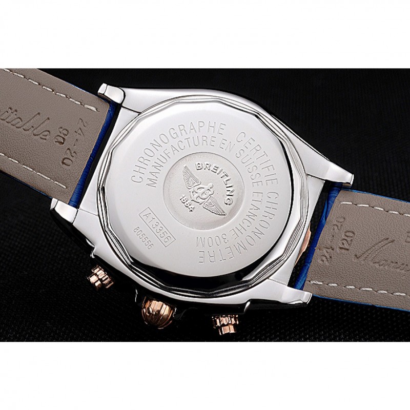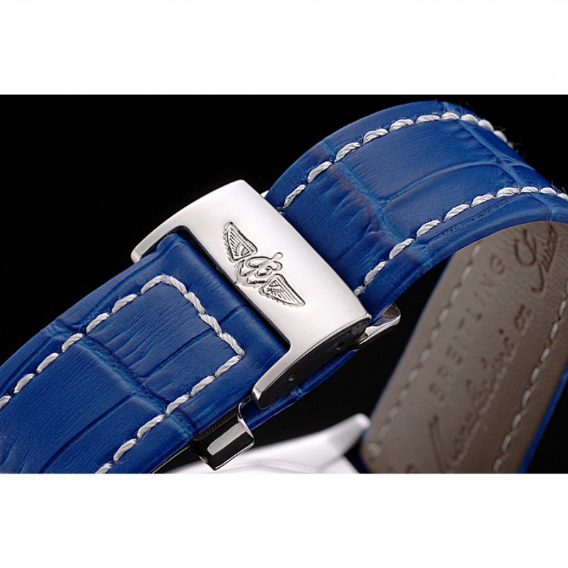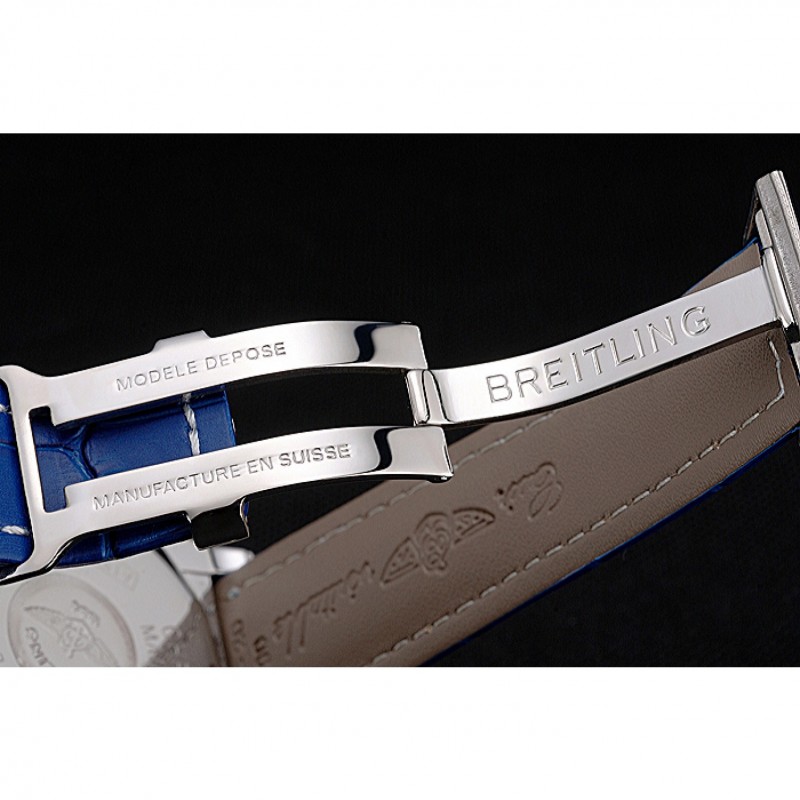 pulsera: Cuir Véritable y correa de piel de calor logotipo en relieve de cocodrilo azul con el logotipo de Breitling grabado de acero inoxidable pulido plegable en el corchete