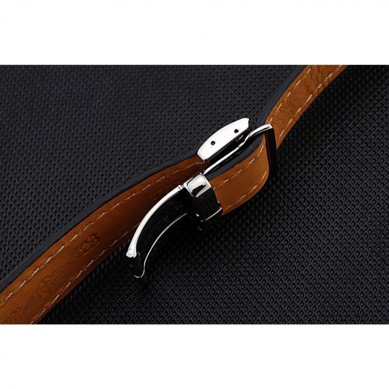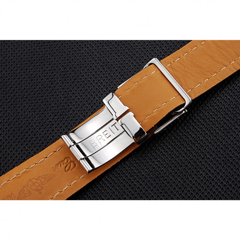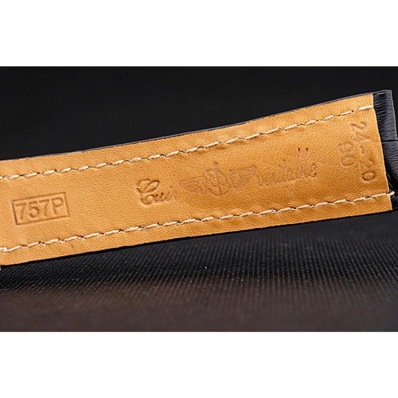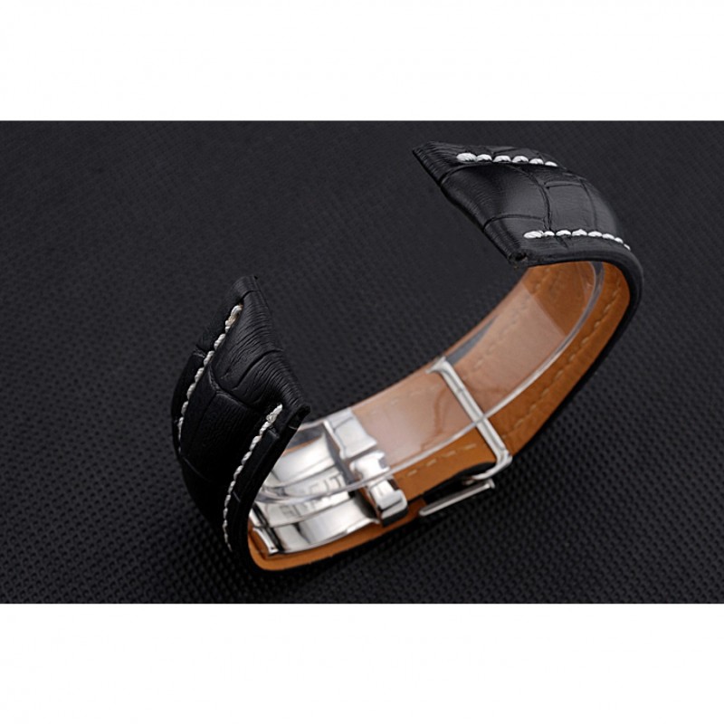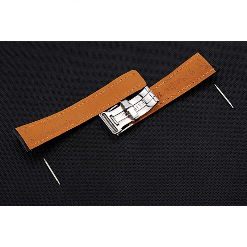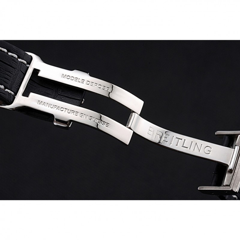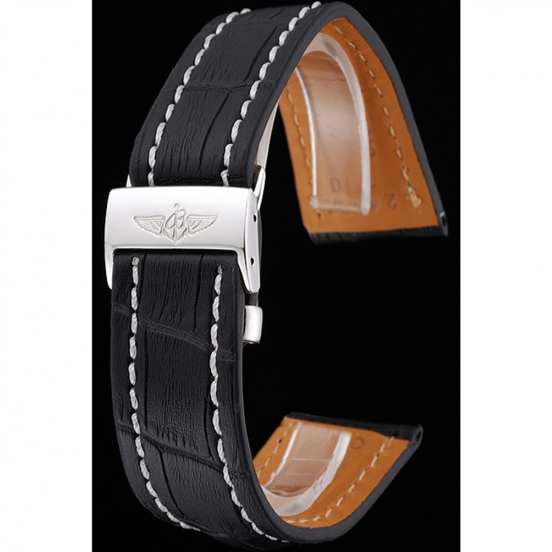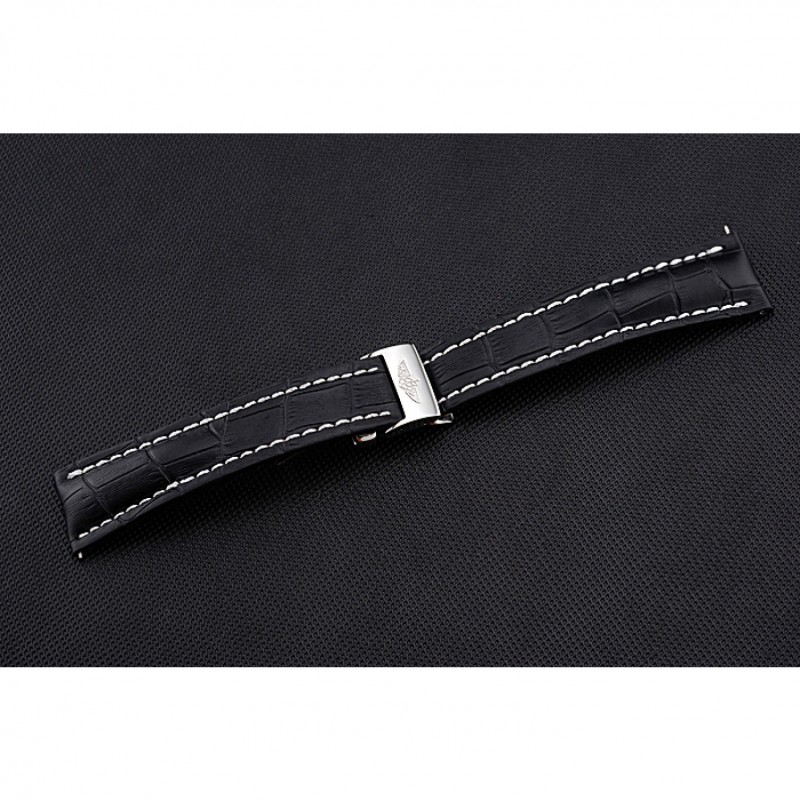 Pulsera: correa de piel de cocodrilo negro calor Cuir Véritable en relieve con la costura de hilo blanco y logotipo de Breitling grabado de acero inoxidable pulido plegable en el corchete