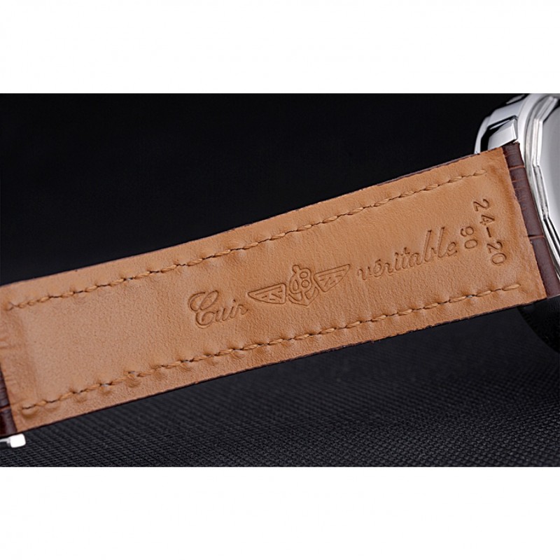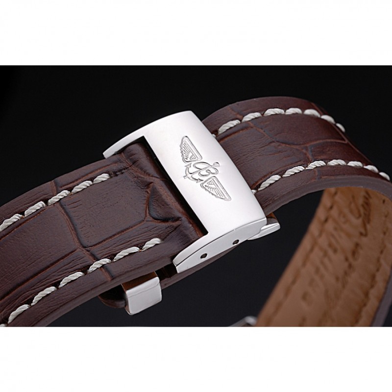 pulsera: Breitling Fabricación en Suisse y el calor logotipo en relieve correa de piel de cocodrilo marrón con costuras de hilo blanco y el logotipo grabado de acero inoxidable pulido plegable en el corchete