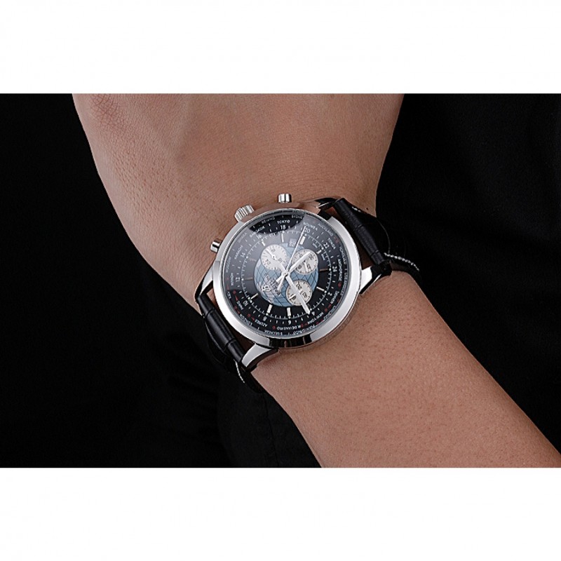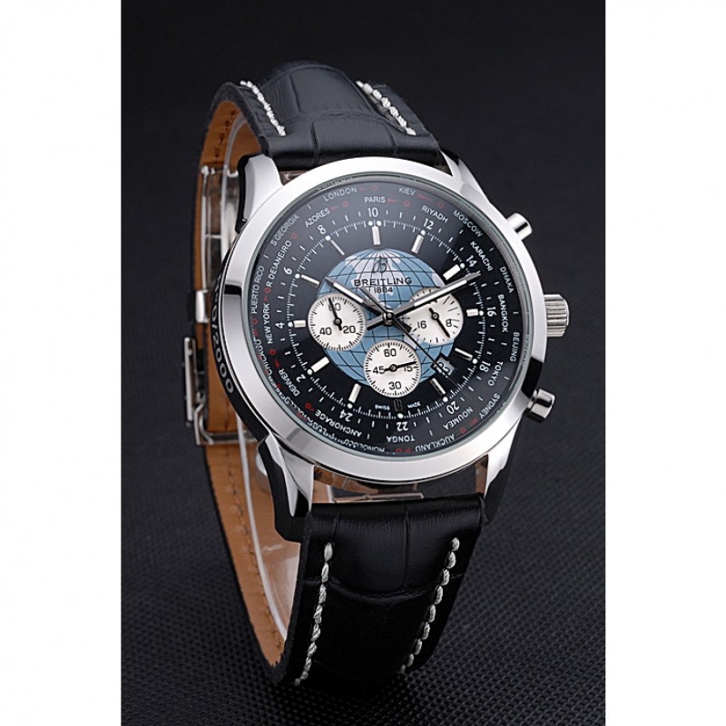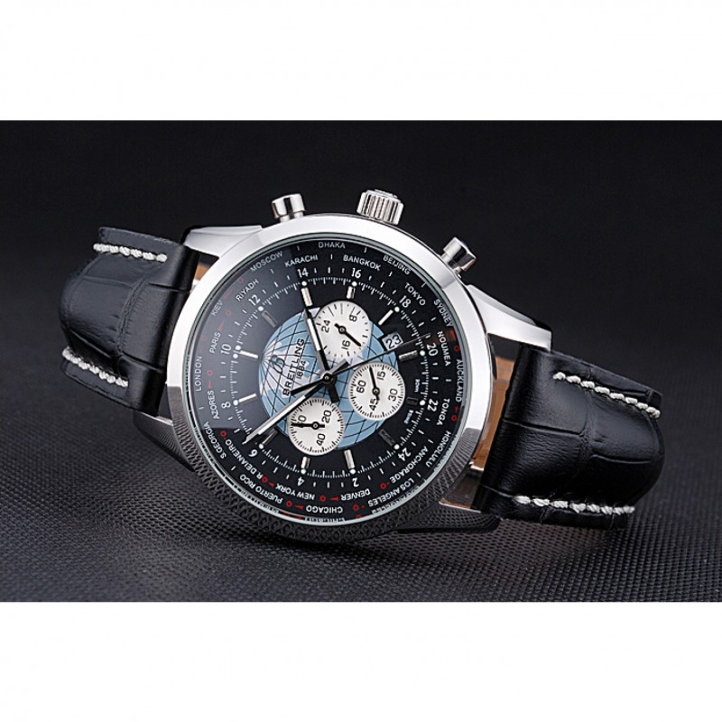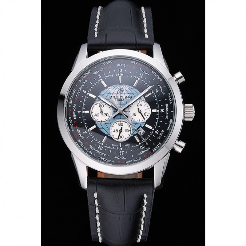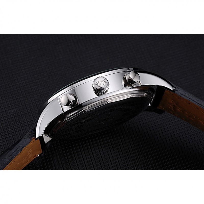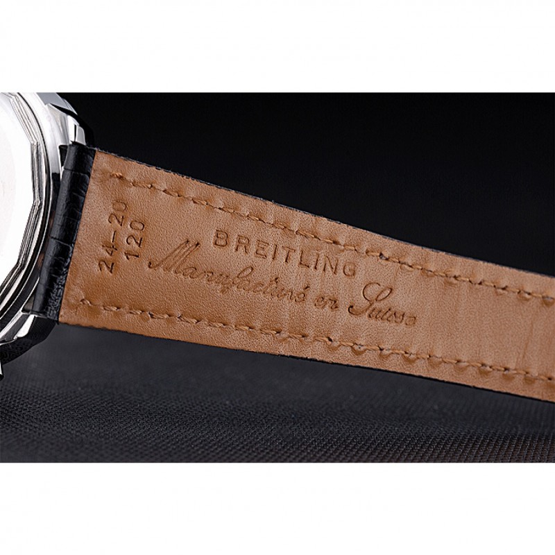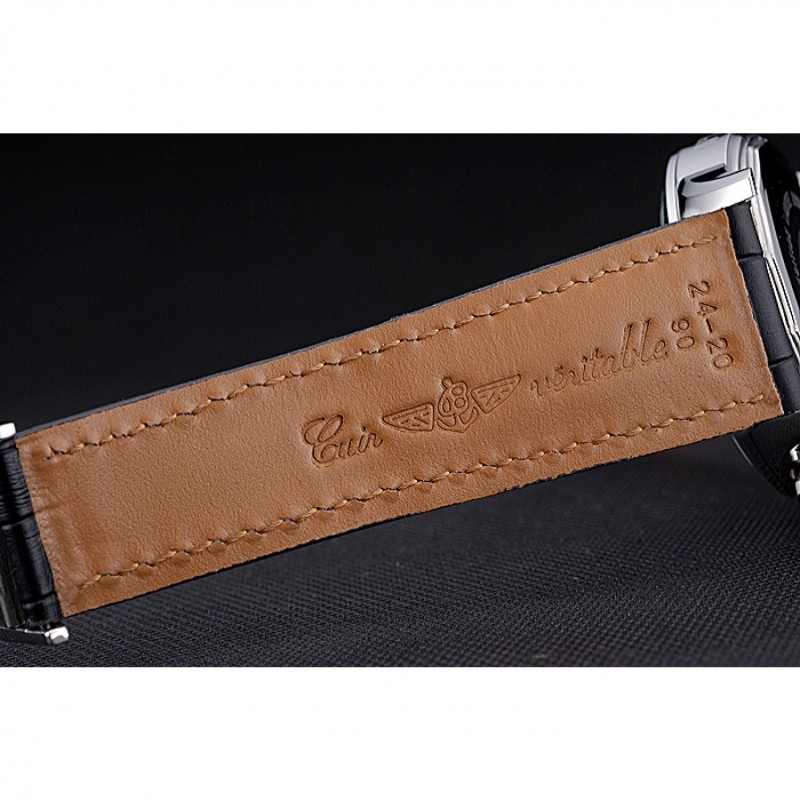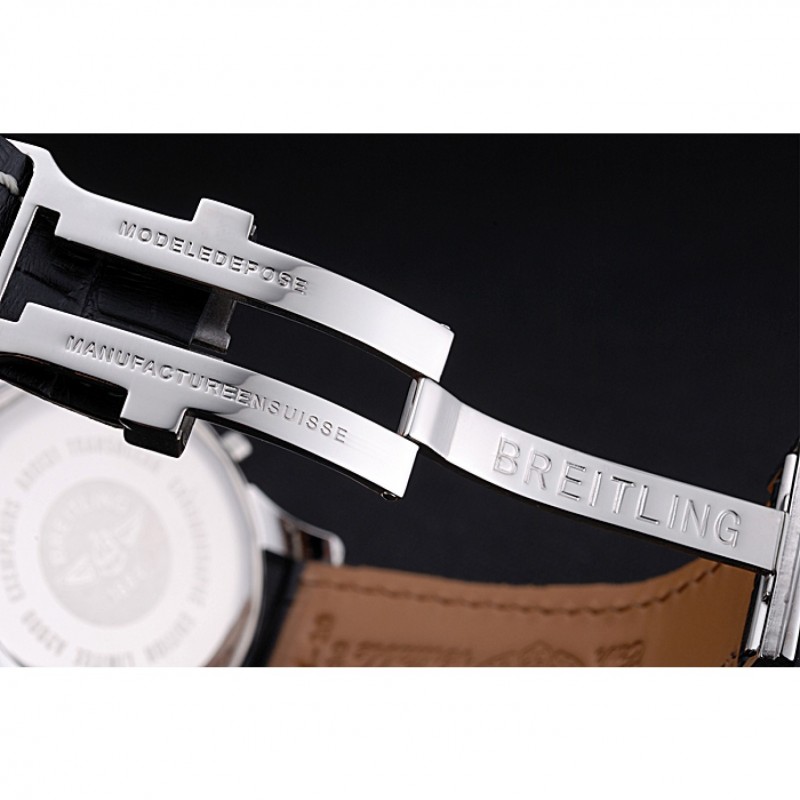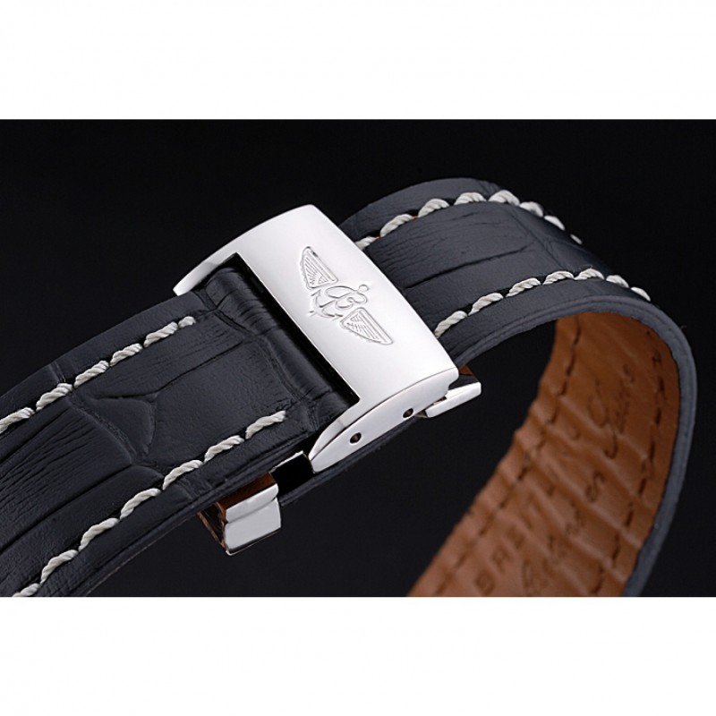 pulsera: Breitling Fabricación en Suisse y el calor logotipo en relieve correa de piel de cocodrilo negro con costuras de hilo blanco y el logotipo grabado de acero inoxidable pulido plegable en el corchete