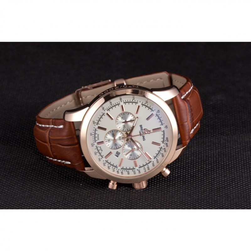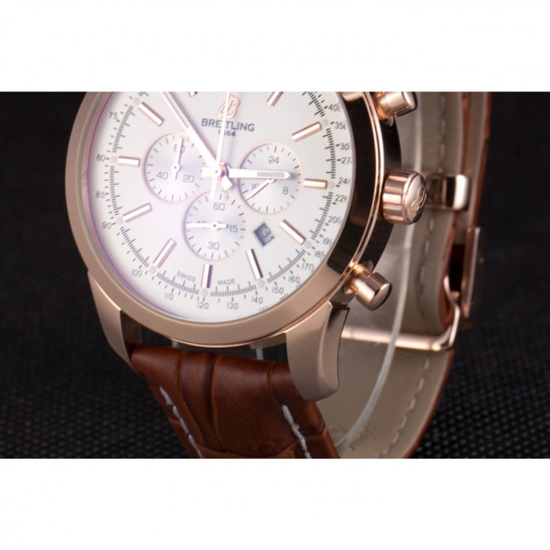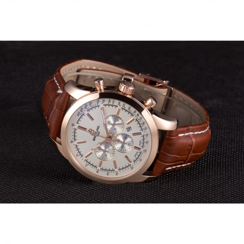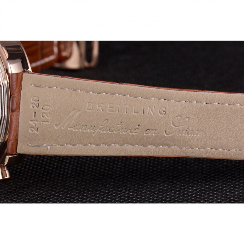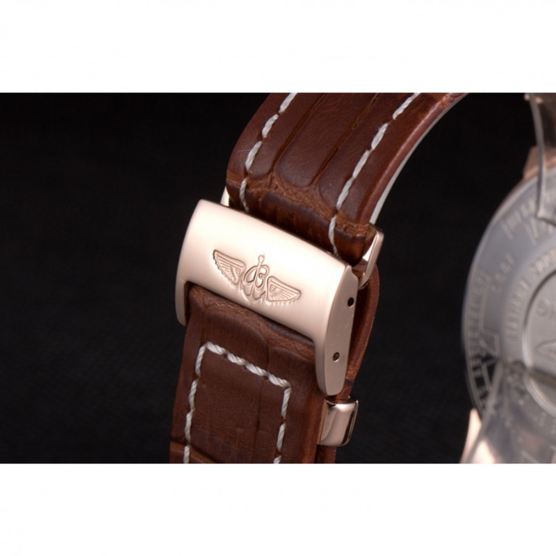 pulsera : el calor en relieve correa de piel de cocodrilo marrón Breitling con costuras de hilo blanco y un logotipo de Breitling grabado plegable en oro rosa plateado broche