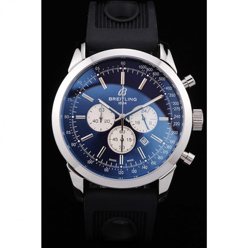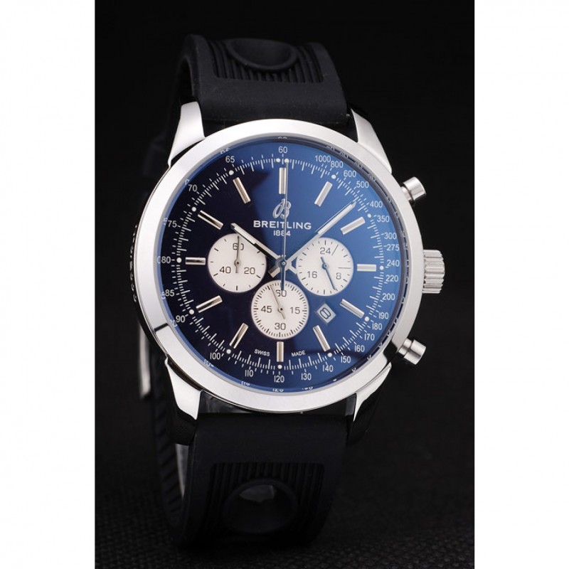 pulsera: correa de caucho Negro con el logotipo de Breitling grabado de acero inoxidable gancho hebilla de cierre