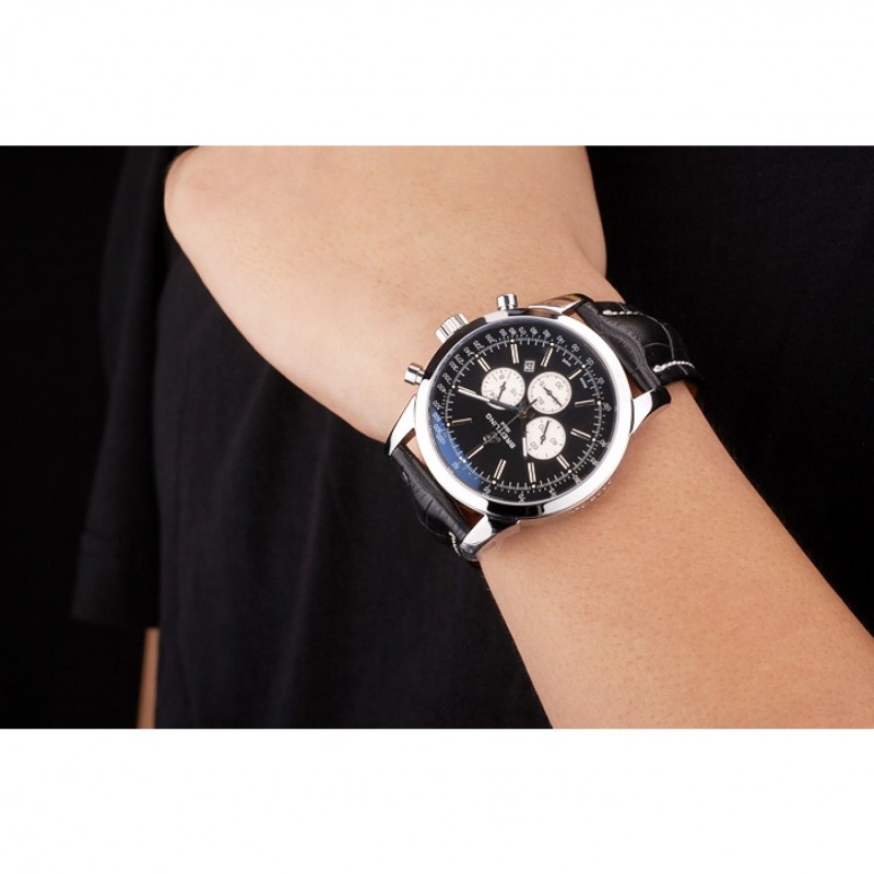 Breitling Transocean Negro Dial correa de cuero Negro pulido bisel de acero inoxidable