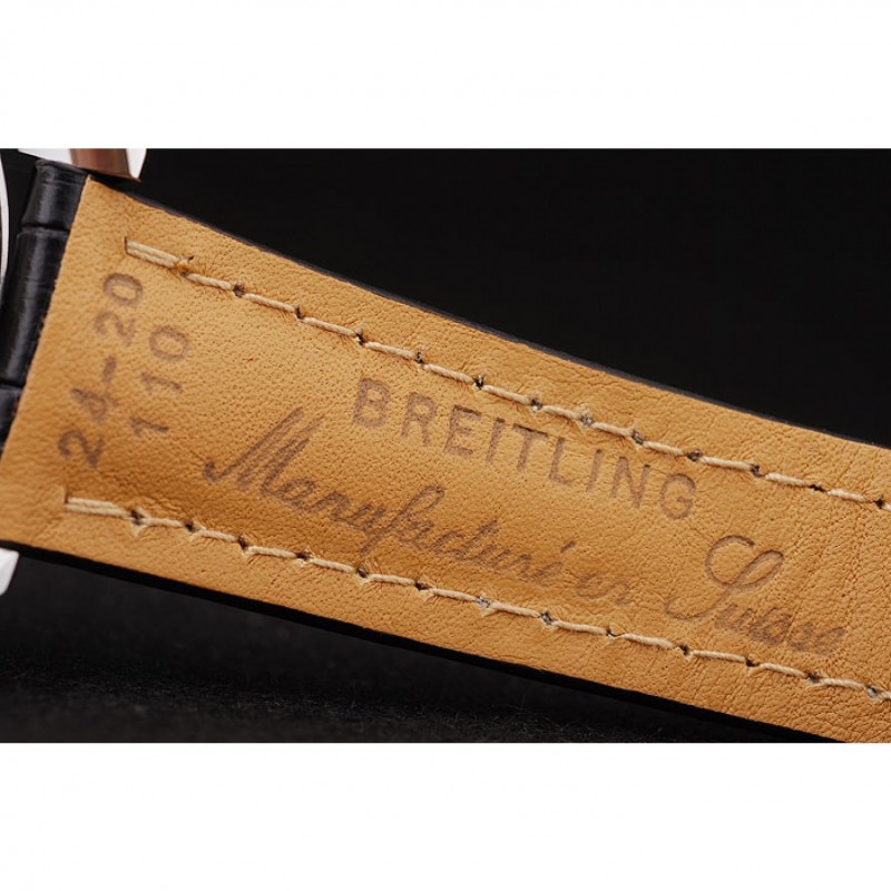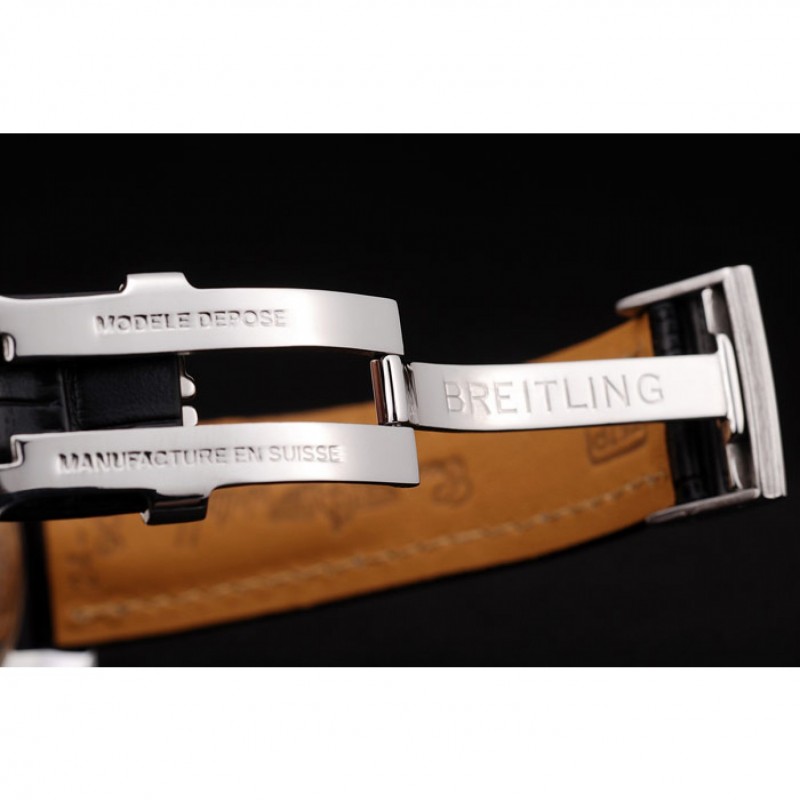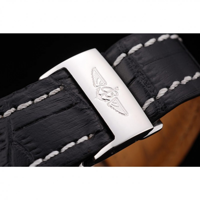 pulsera: el calor en relieve correa de piel de cocodrilo negro Breitling con costuras de hilo blanco y un logotipo de Breitling grabado plegable de cierre de acero inoxidable/span>