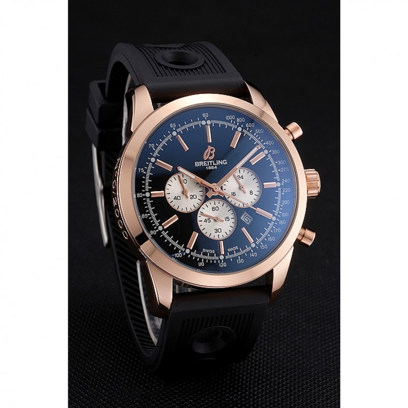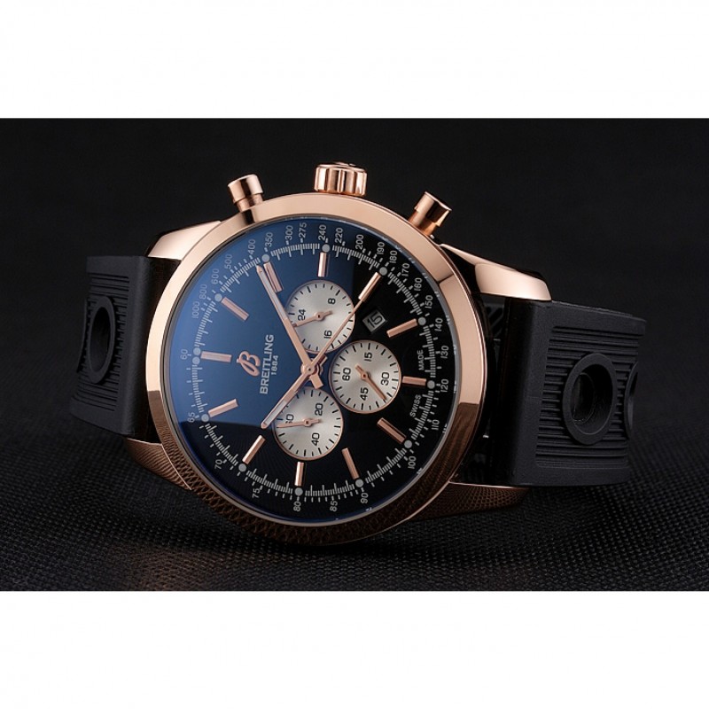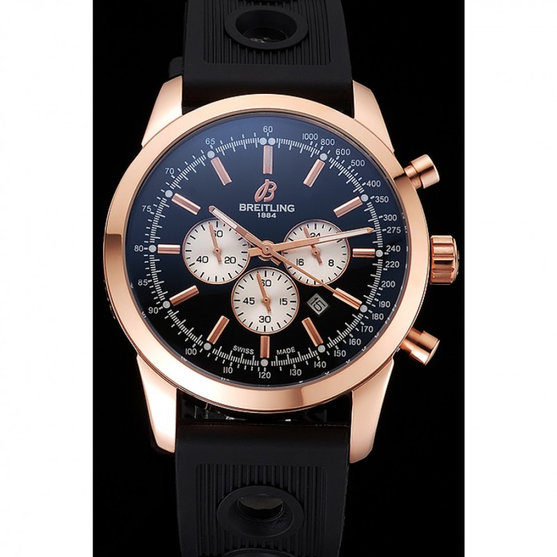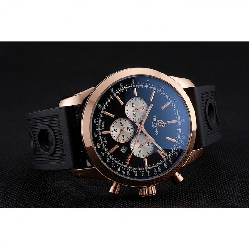 pulsera : correa de caucho Negro con el logotipo de Breitling de plata grabada plateado broche de gancho hebilla
