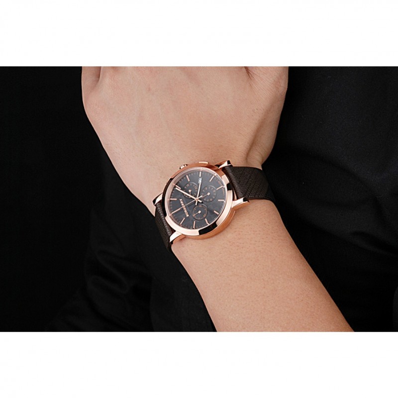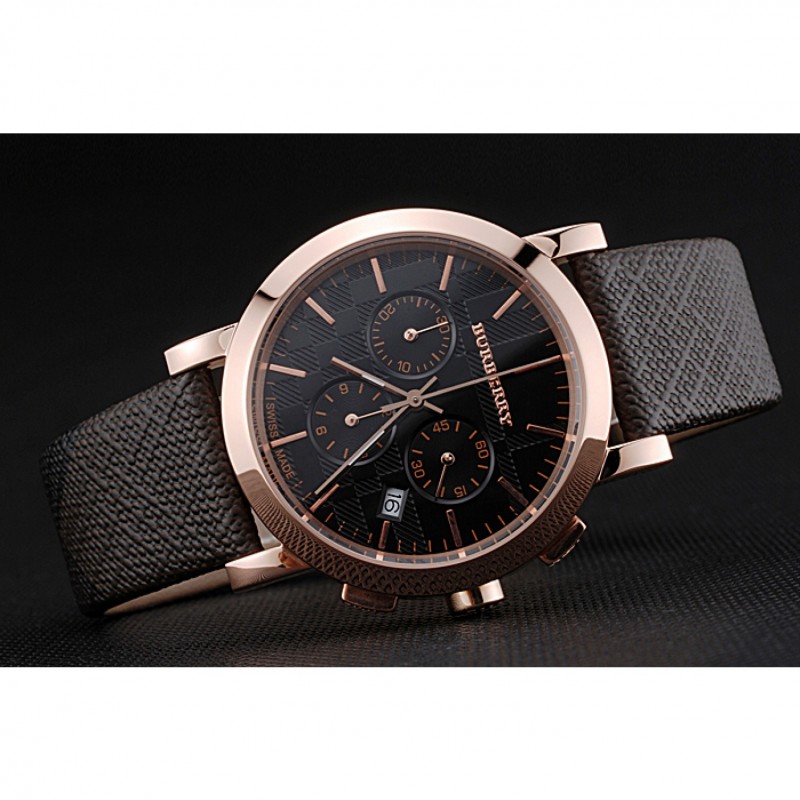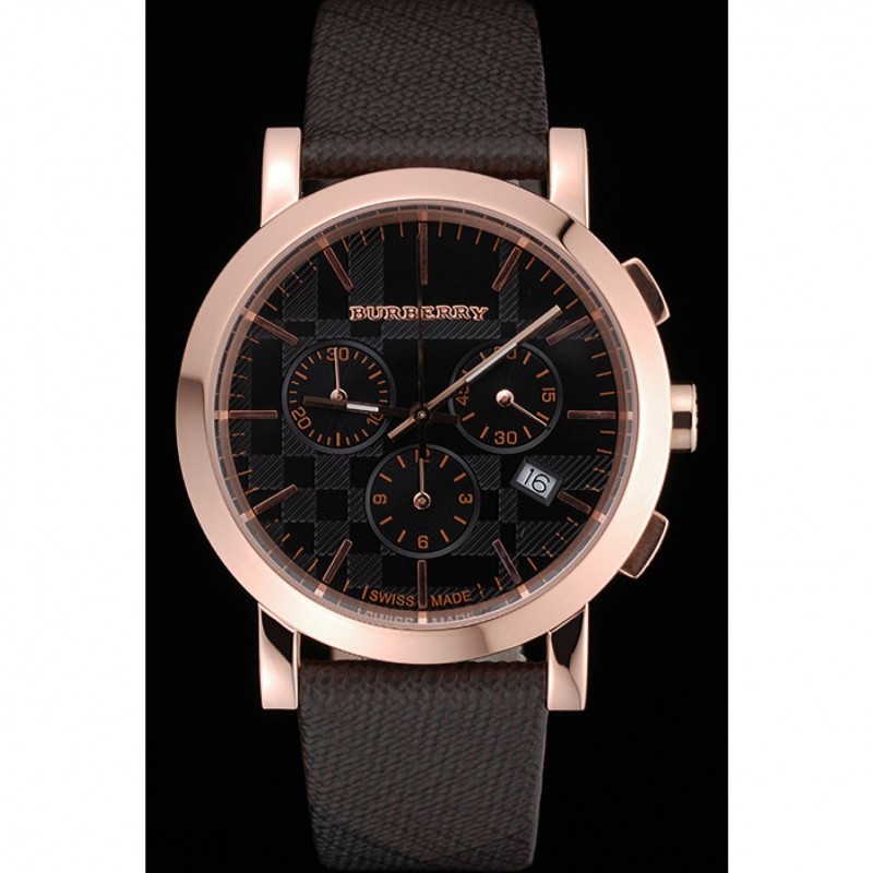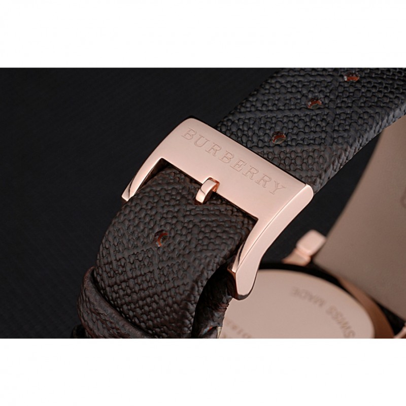 pulsera: en relieve textura de cuero marrón de calor Burberry con Burberry grabado 18K rose-chapado en oro de gancho hebilla de cierre