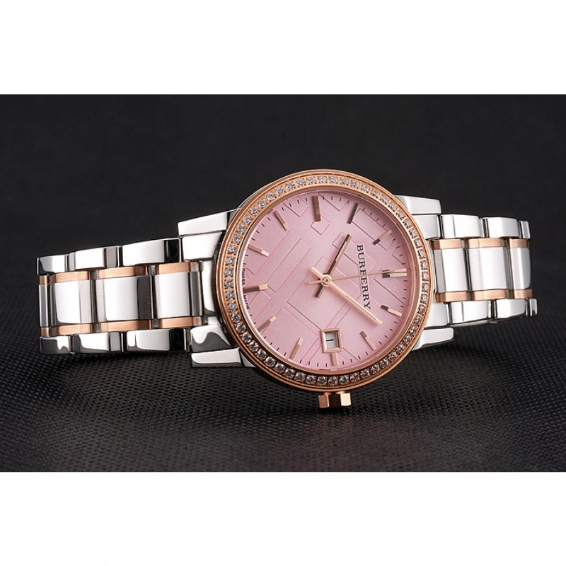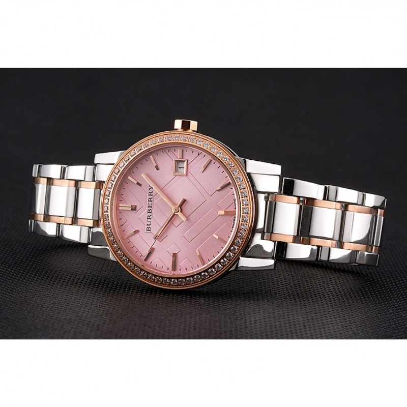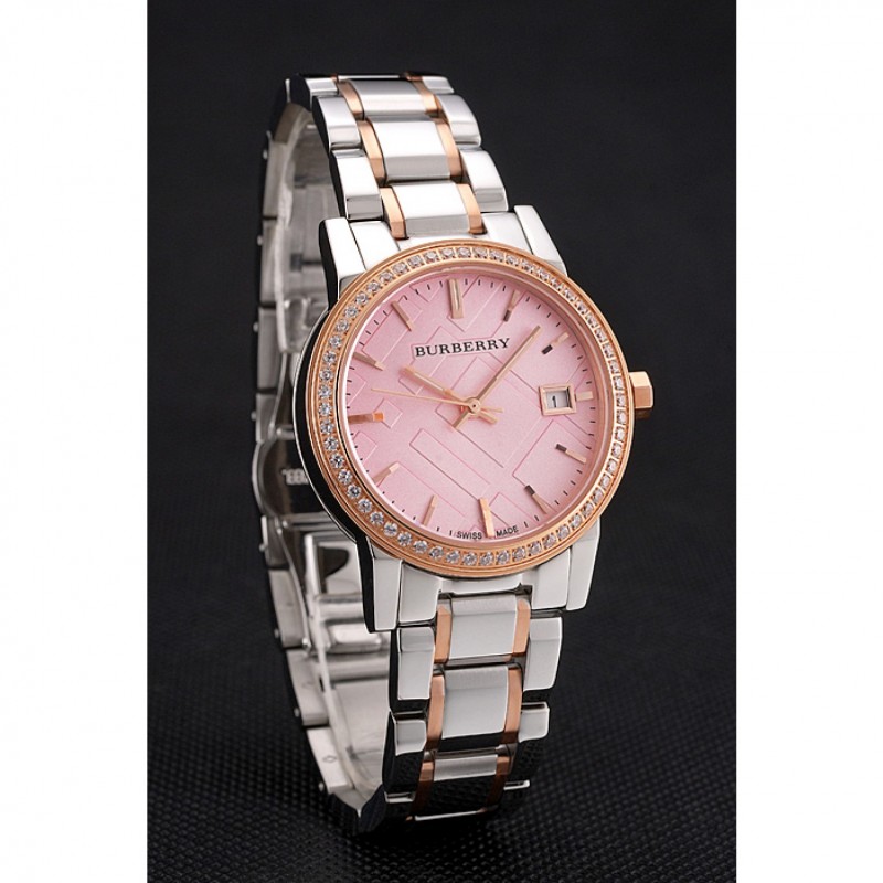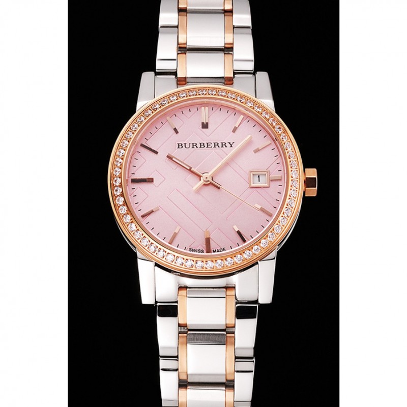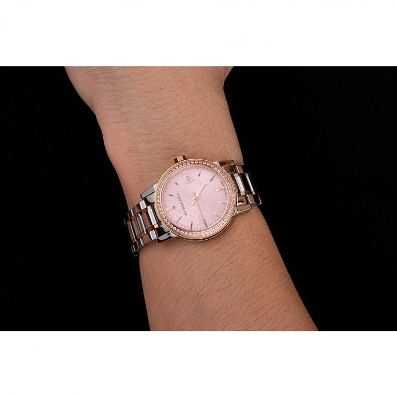 Volver: atornillada pulida de acero inoxidable de nuevo con Burberry inscripción