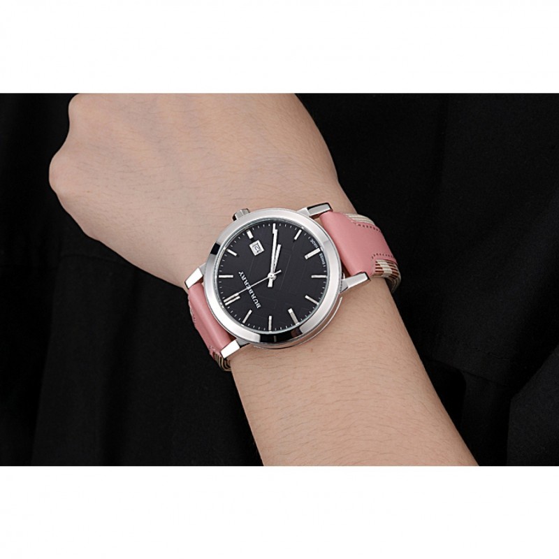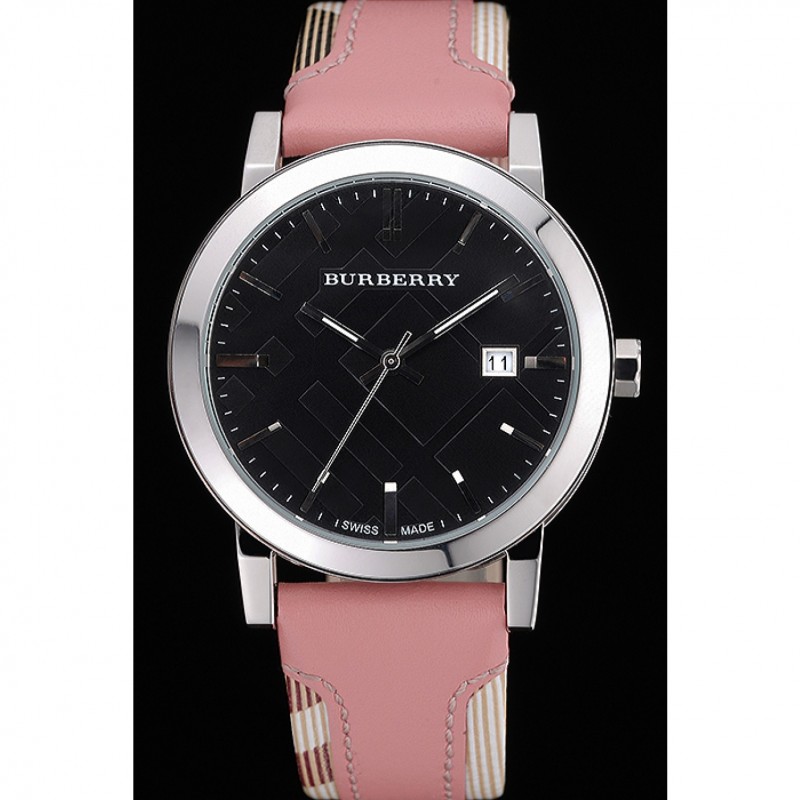 pulsera: calor correa de cuero azul en relieve Burberry con Burberry cuero de la impresión a cuadros recortar a lo largo de los bordes y Burberry grabado de acero inoxidable pulido gancho hebilla de cierre