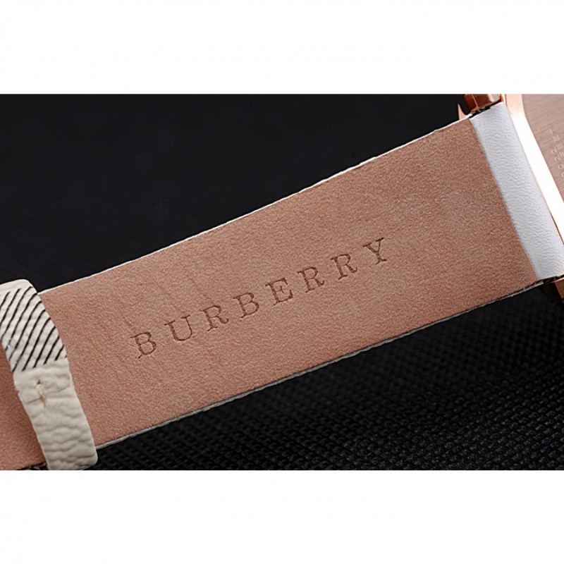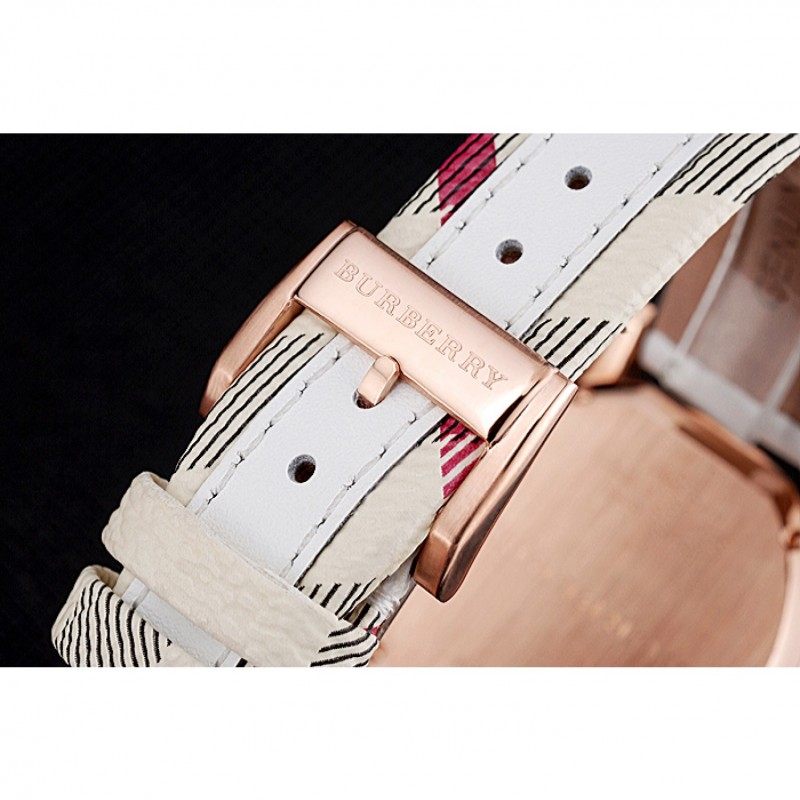 pulsera: correa de cuero blanco de Burberry de calor en relieve con Burberry cuero de la impresión a cuadros recortar a lo largo de los bordes y Burberry grabado 18k-oro rosa plateado gancho hebilla de cierre