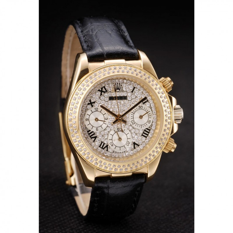 Corona : 18k corona amarilla calado de oro con el logotipo de Rolex y dos botones coronas cutwork empuje más pequeños a cada lado de la misma