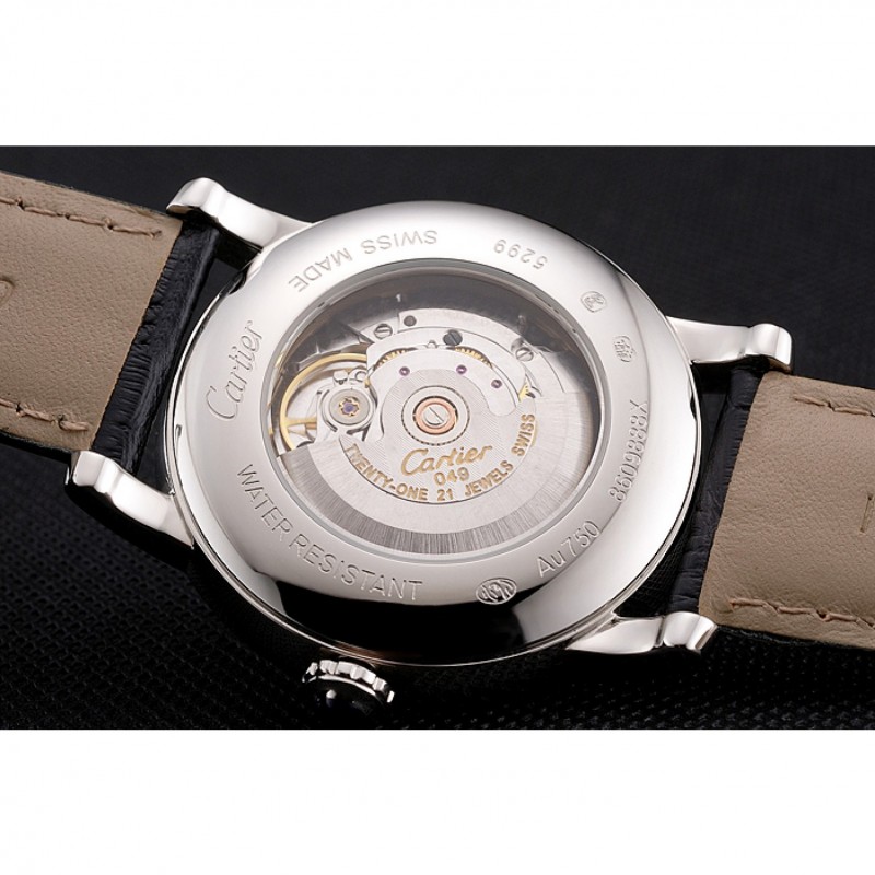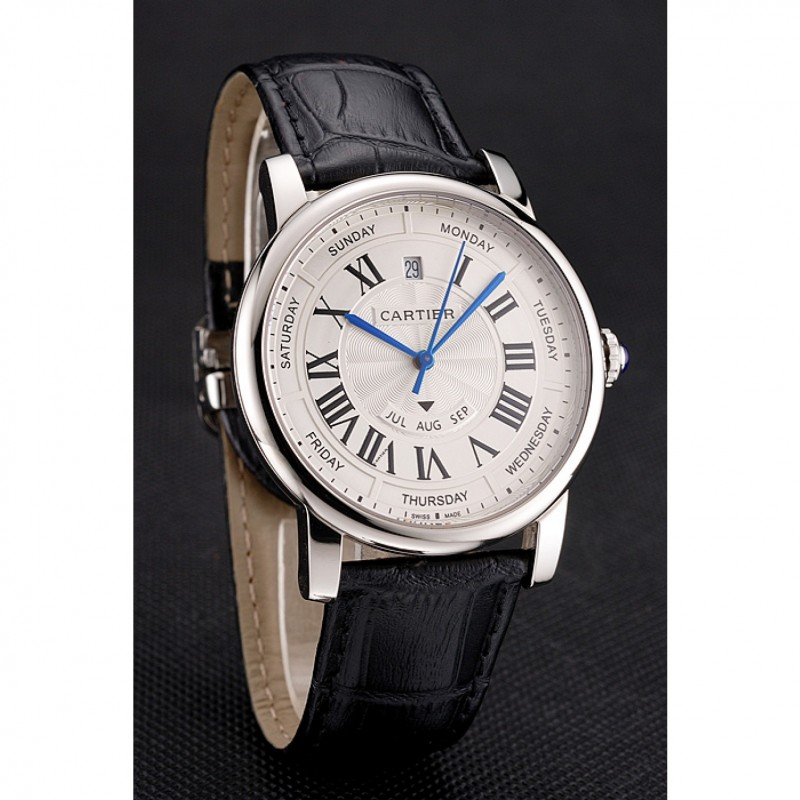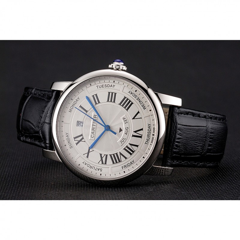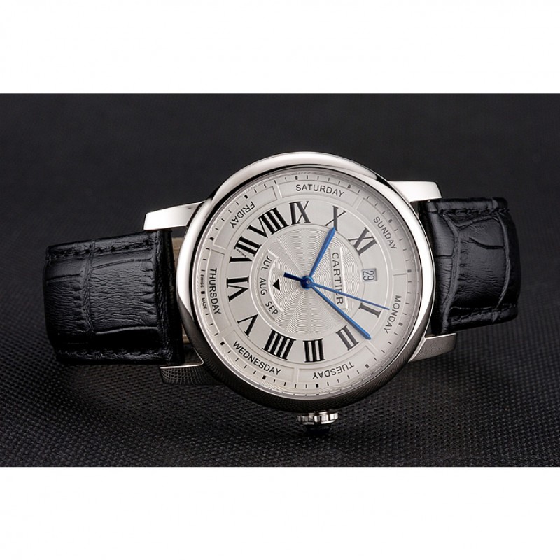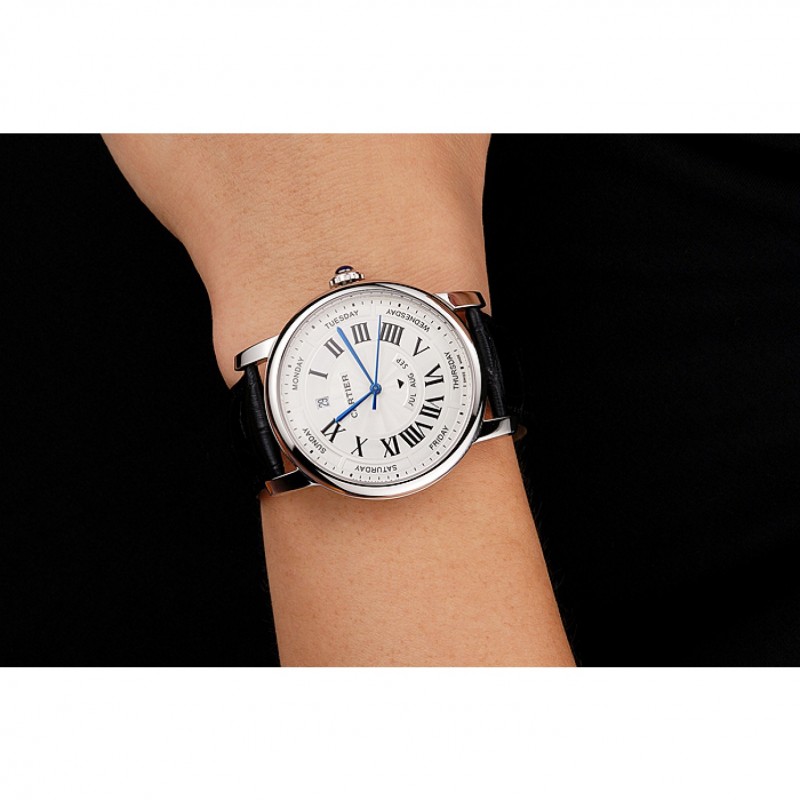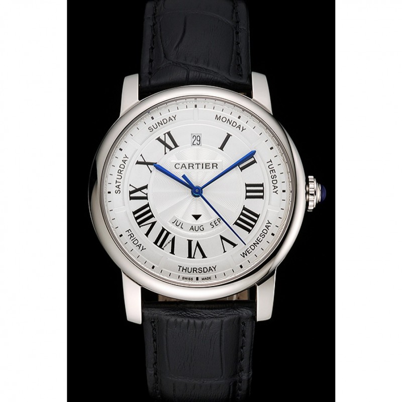 Inicio / Cartier / Calendario suizo Cartier Rotonde Anual esfera blanca correa de cuero caja de acero inoxidable Negro
