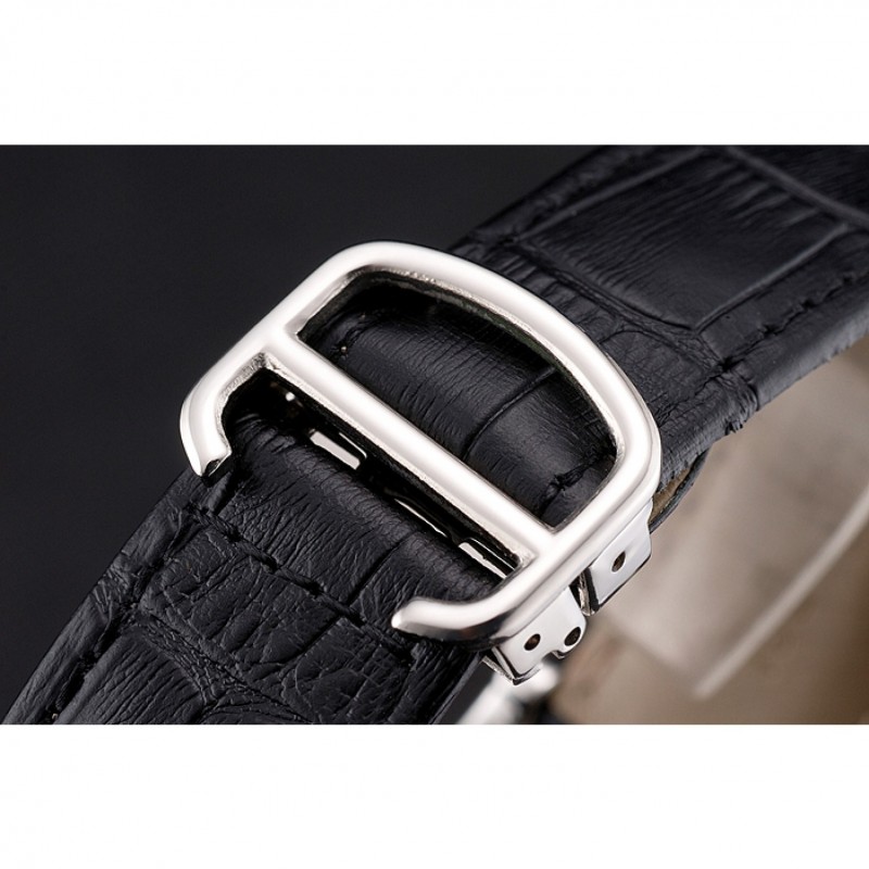pulsera: Cartier y correa de piel de cocodrilo negro de calor en relieve código de producto con un acero inoxidable cepillado plegable en el corchete