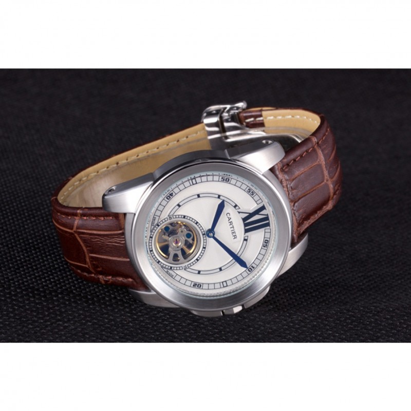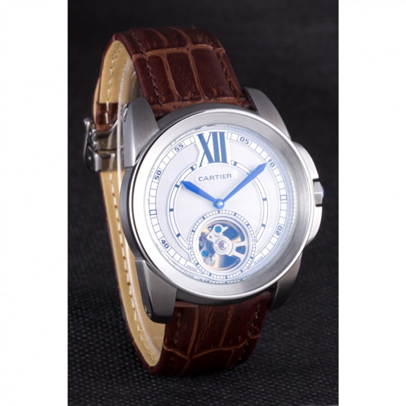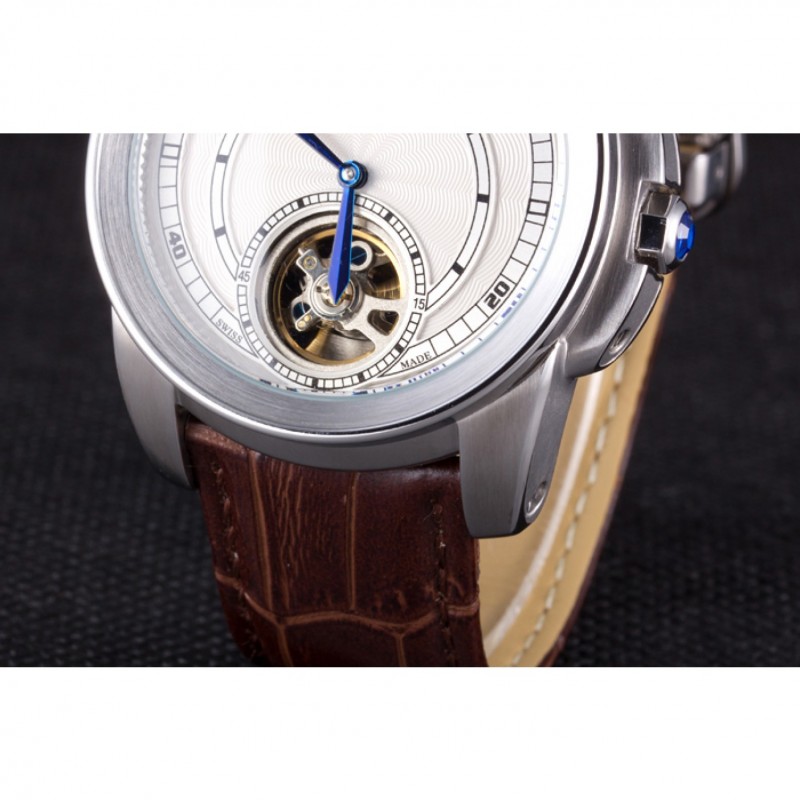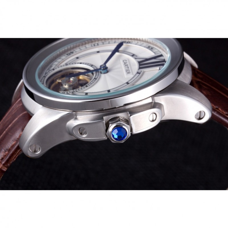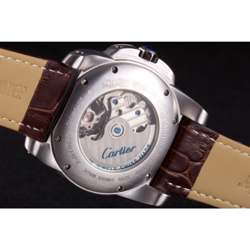 Volver: Cartier grabado acero inoxidable cepillado atornillado de nuevo con la mecánica revelador centro transparente