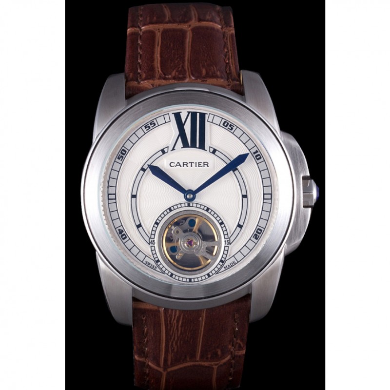 pulsera: El calor en relieve Cartier estampada correa de piel de cocodrilo de color marrón claro con acero inoxidable cierre oculto