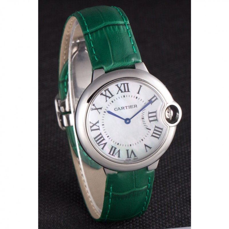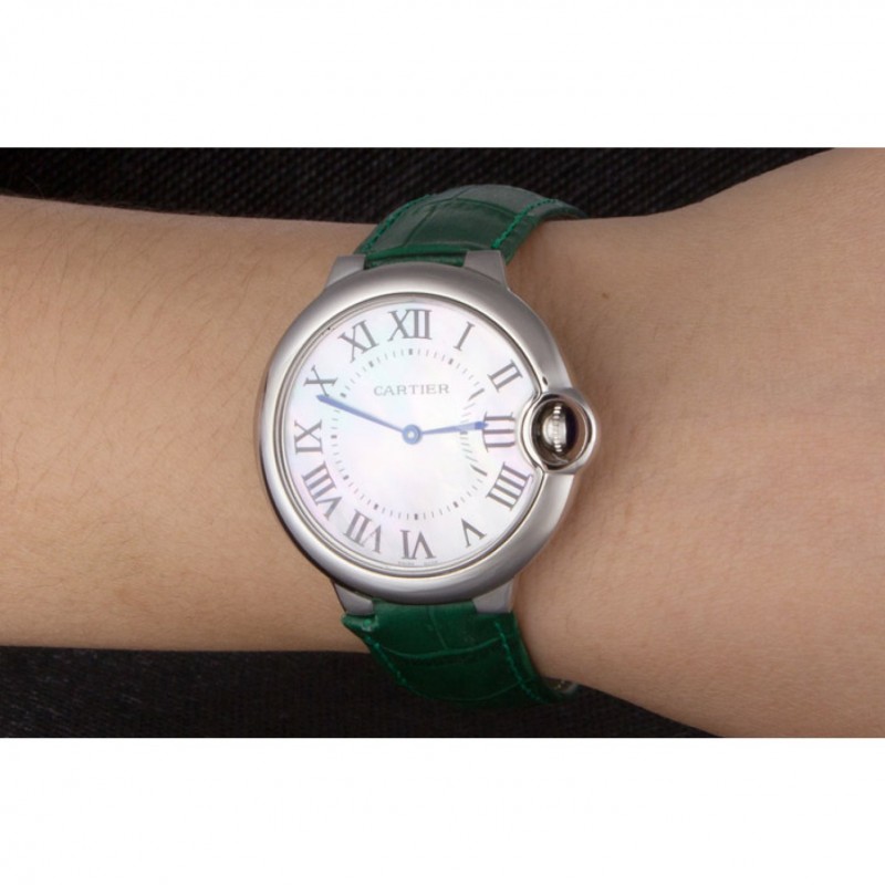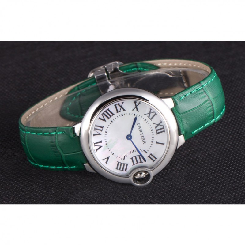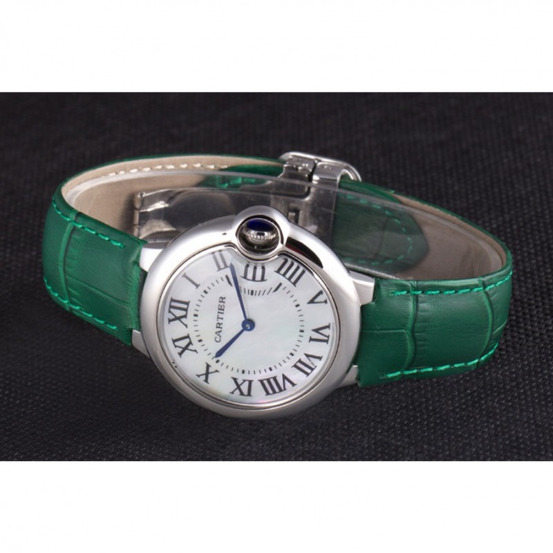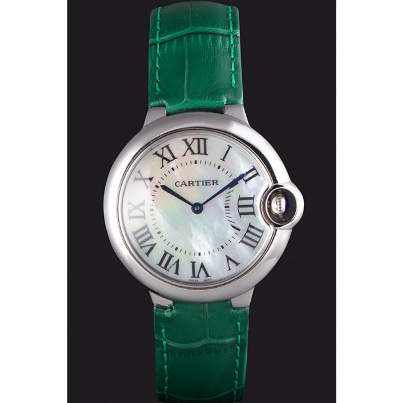 Inicio / Cartier / Cartier Ballon Bleu bisel plateado con la línea de perlas banda de cuero verde 621552