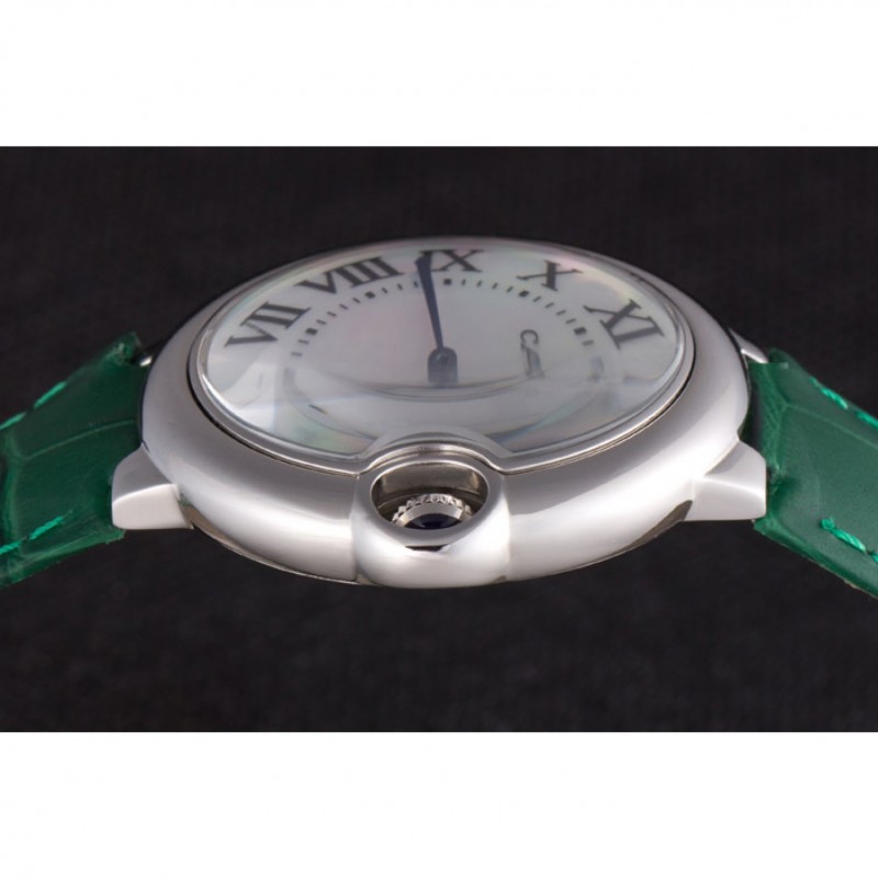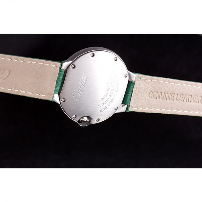 Cartier Ballon Bleu bisel plateado con la línea de perlas banda de cuero verde 621552