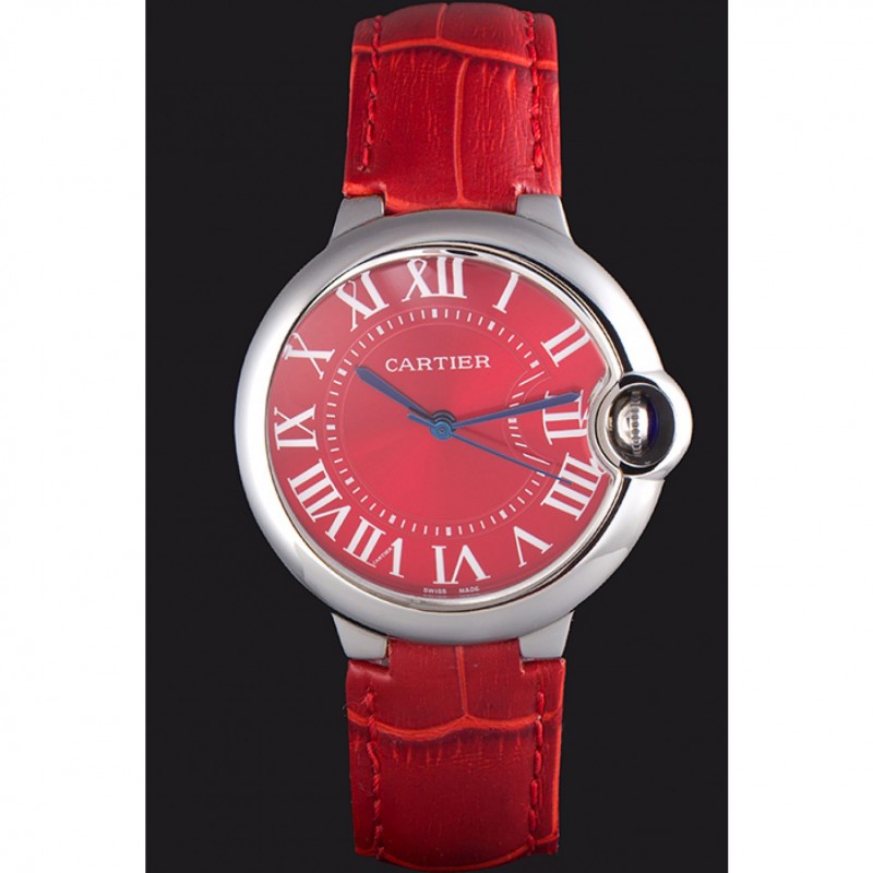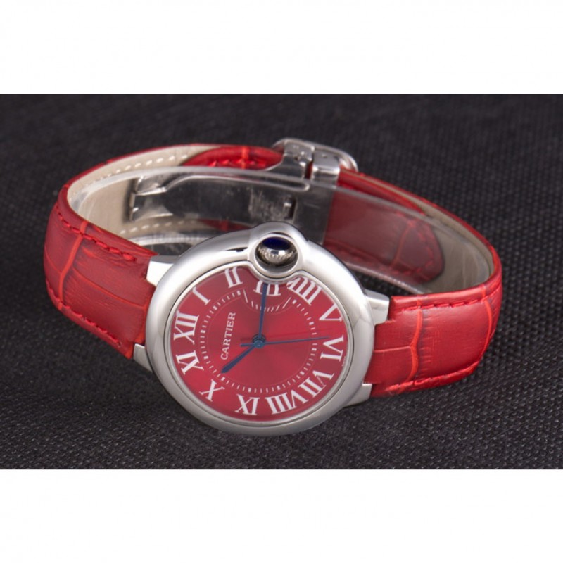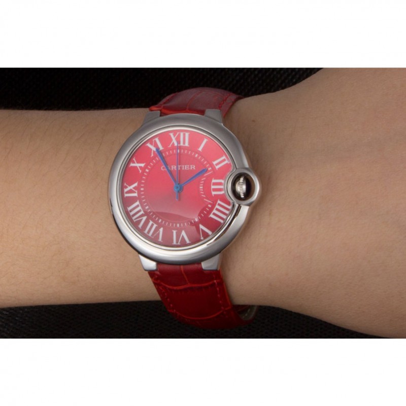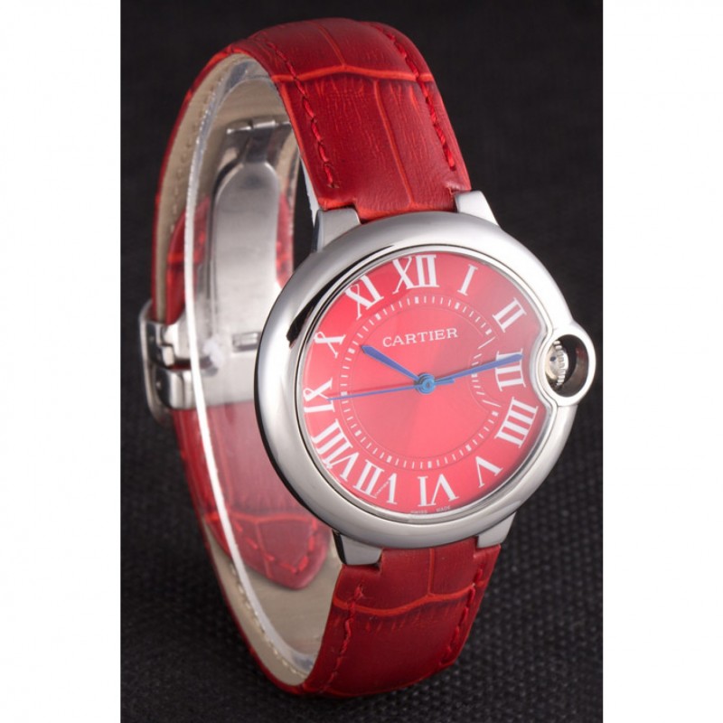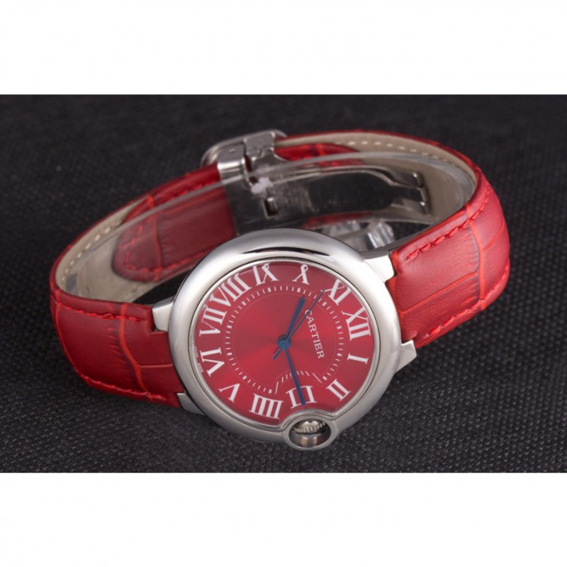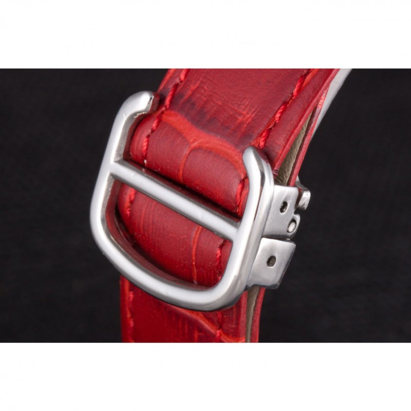 pulsera: correa de piel de cocodrilo rojo de calor Cartier en relieve con pulido hebilla de acero inoxidable cierre