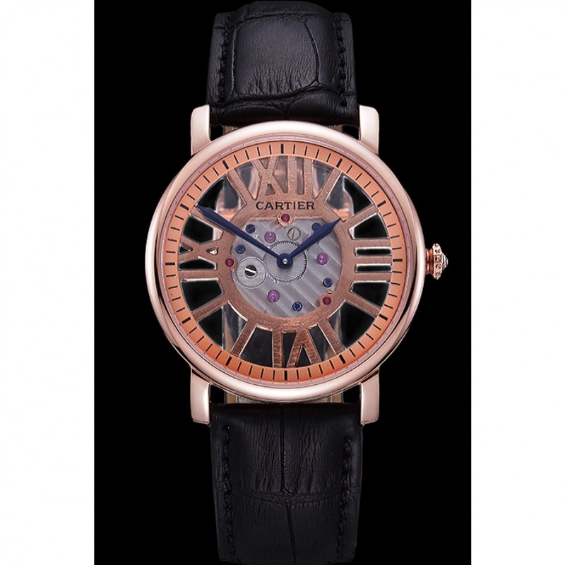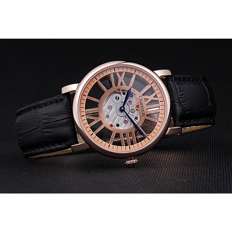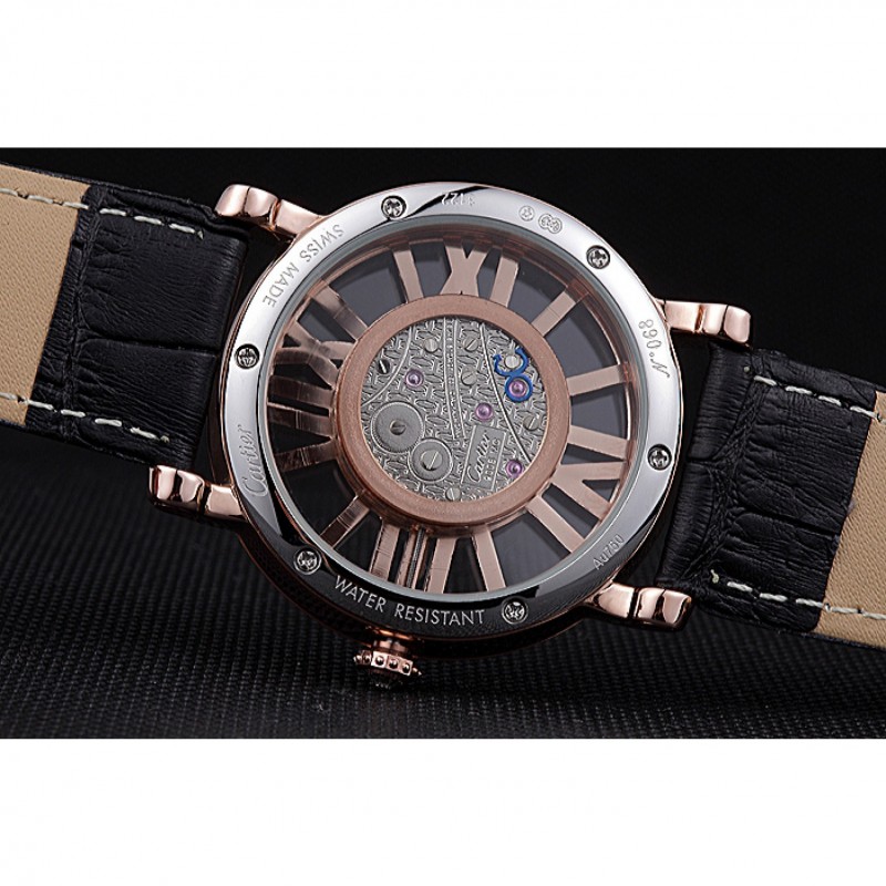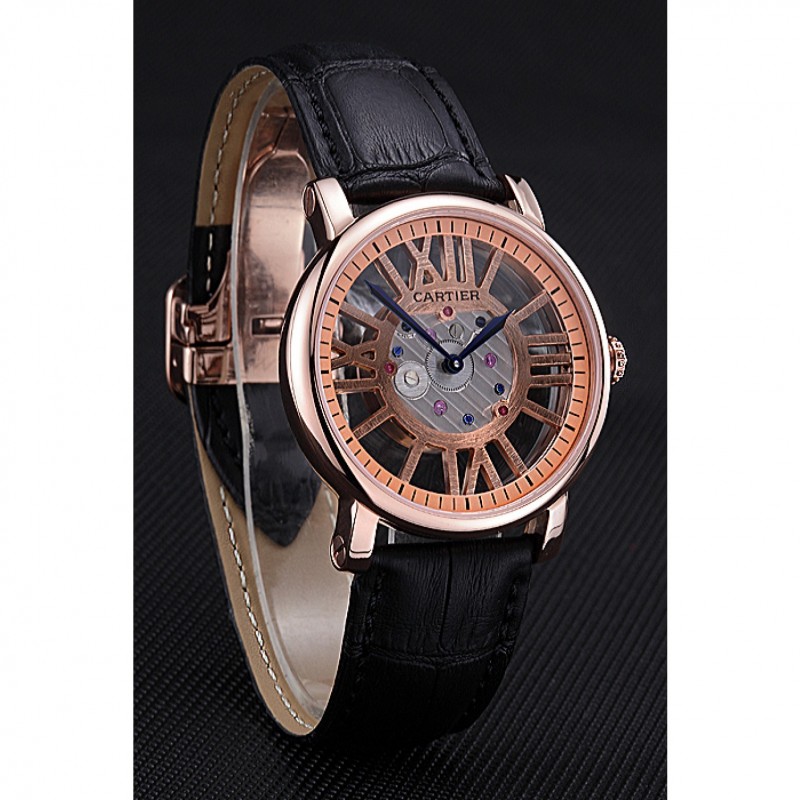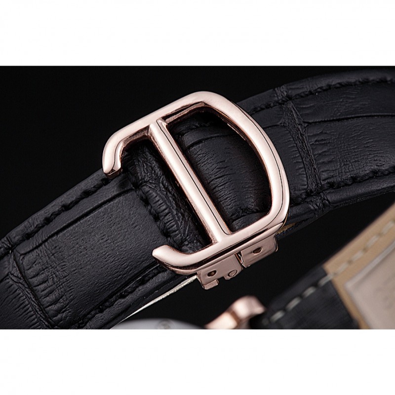pulsera: en relieve correa de piel de cocodrilo negro calor Cartier rosa de 18 quilates chapado en oro plegable en corchete