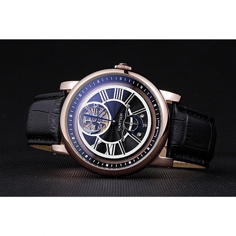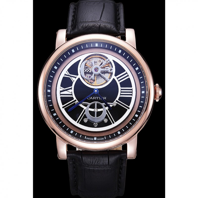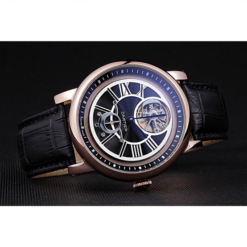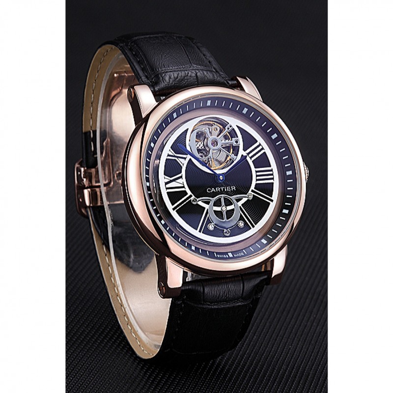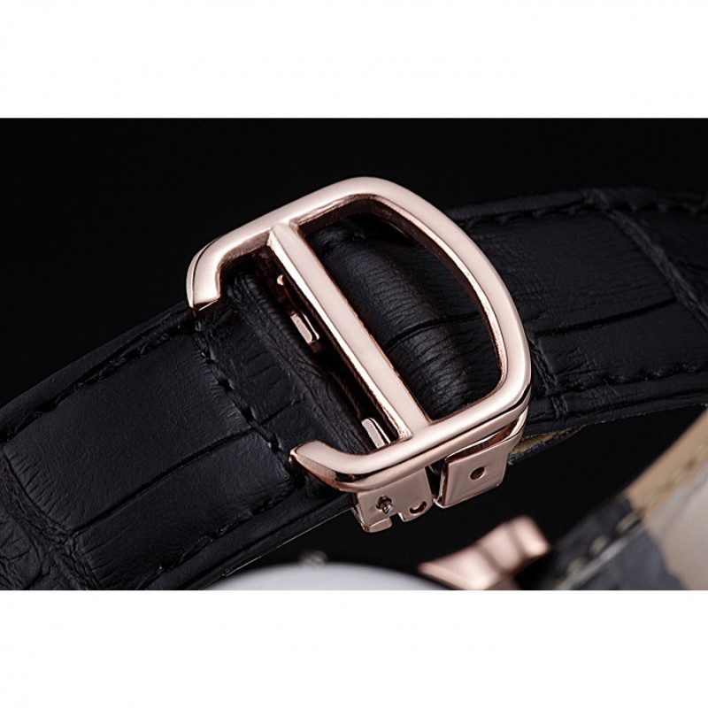 pulsera: en relieve correa de piel de cocodrilo negro calor Cartier rosa de 18 quilates chapado en oro plegable en corchete