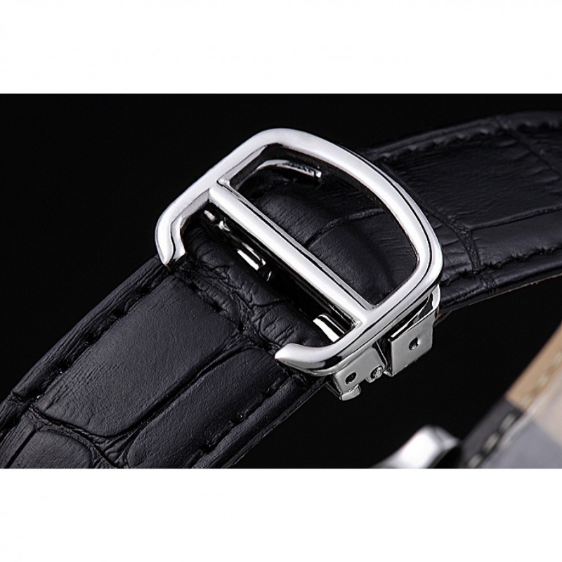 pulsera: correa de piel de cocodrilo negro de calor Cartier en relieve con acero inoxidable pulido plegable en el corchete