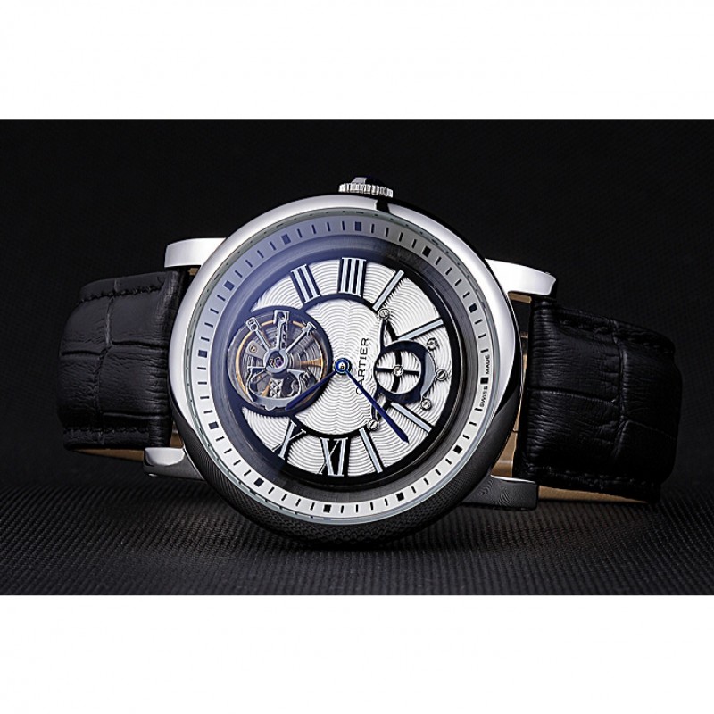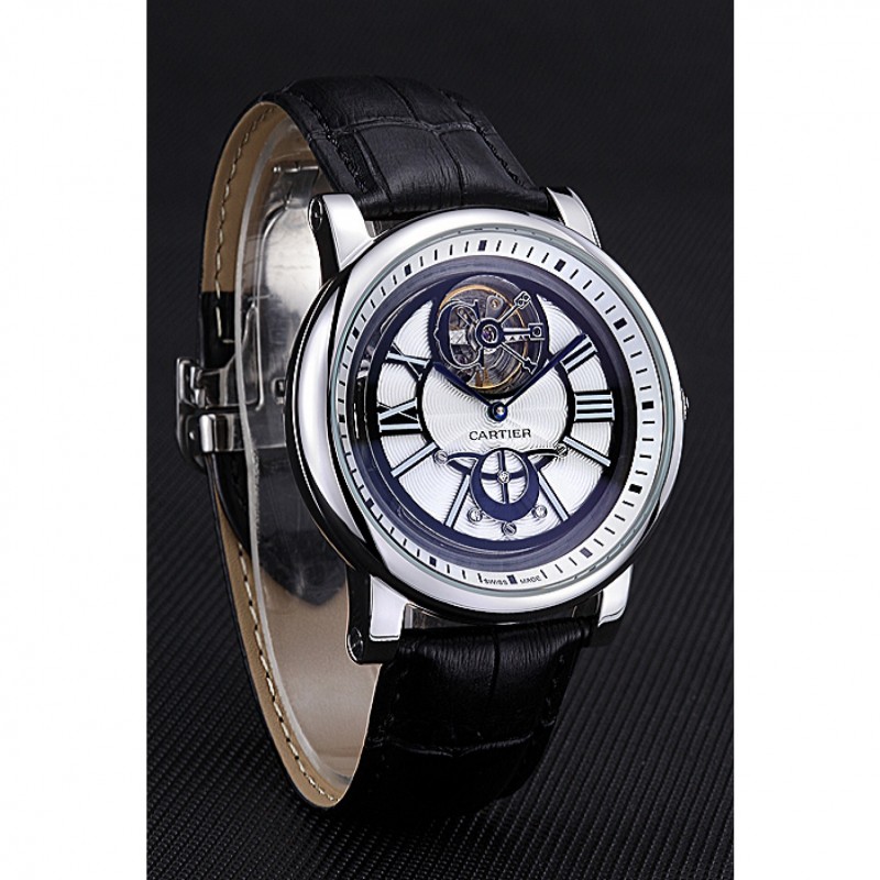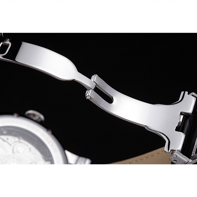 pulsera: correa de piel de cocodrilo negro de calor Cartier en relieve con acero inoxidable pulido plegable en el corchete