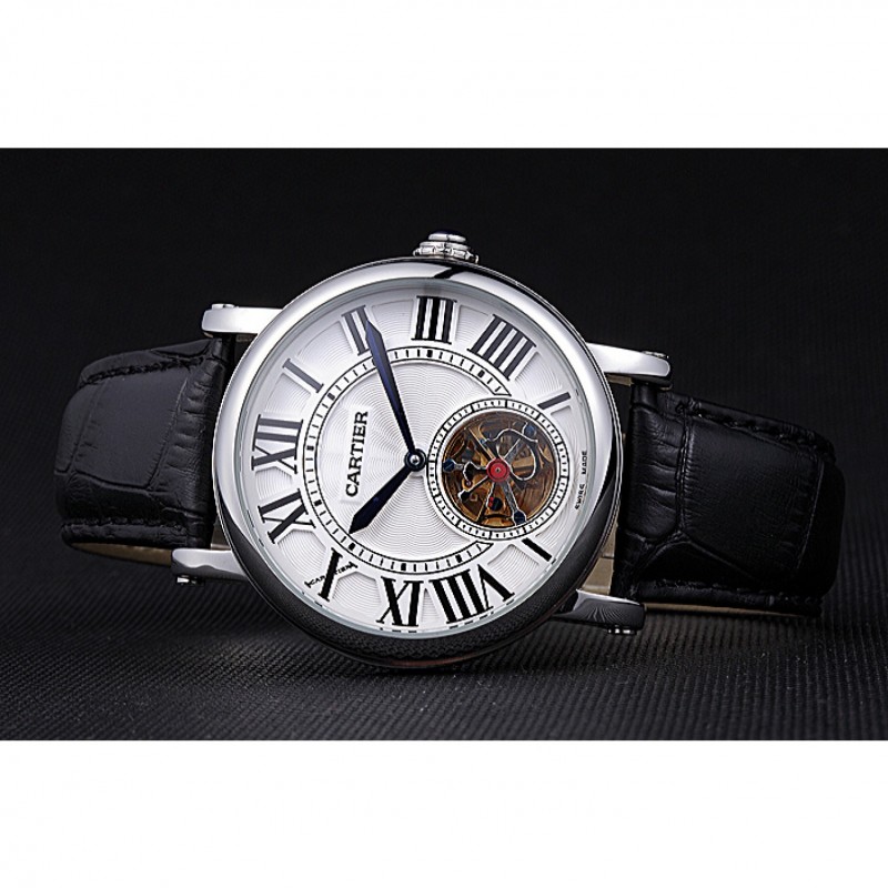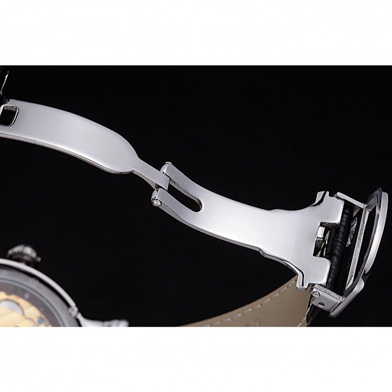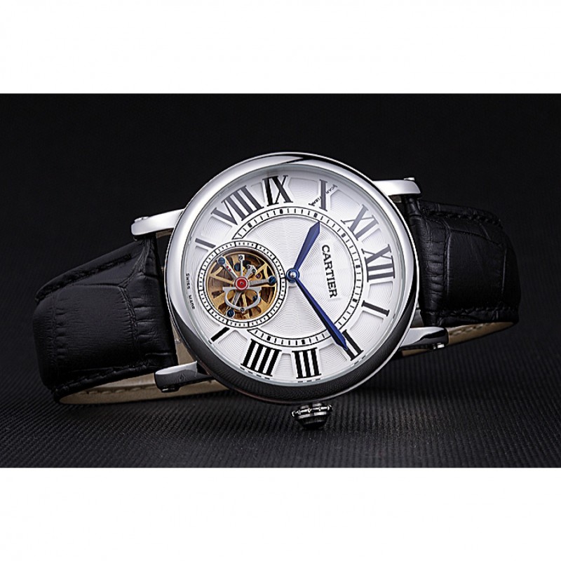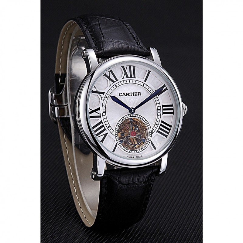 pulsera: correa de piel de cocodrilo negro de calor Cartier en relieve con acero inoxidable pulido plegable en el corchete