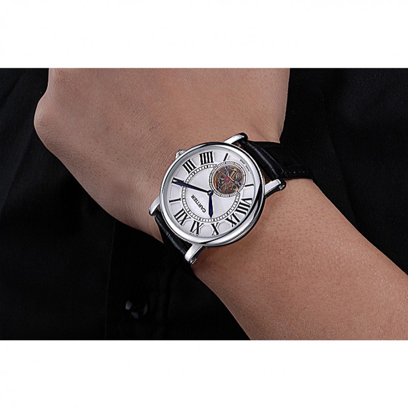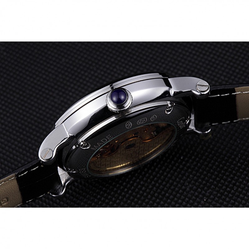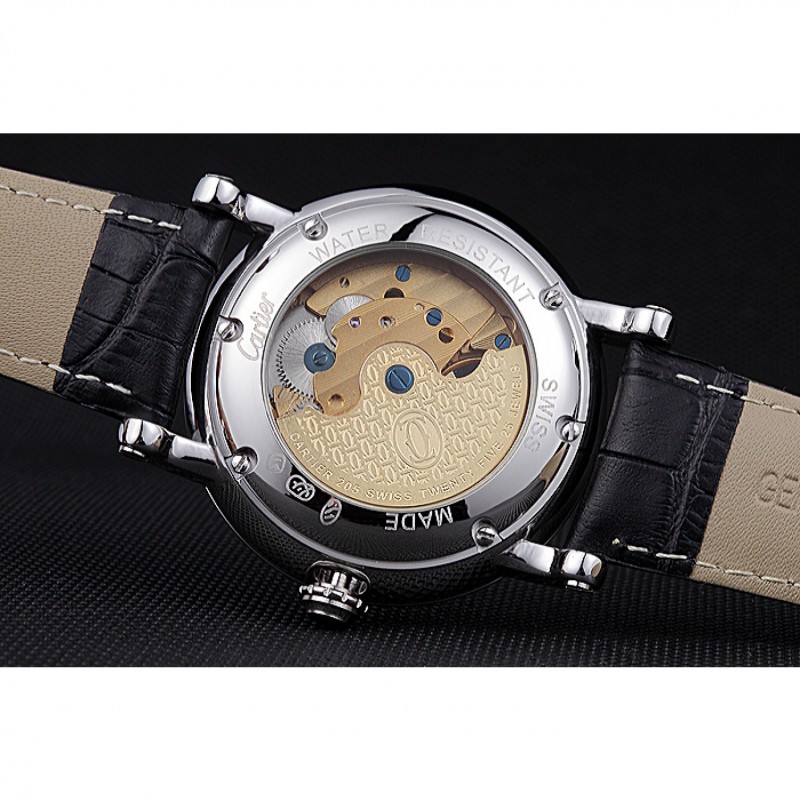 Volver: acero inoxidable pulido atornillada de nuevo con la mecánica transparentes revelando centro y la inscripción Cartier