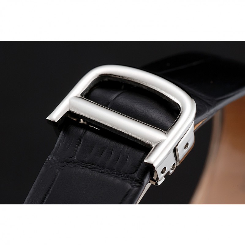 pulsera: correa de piel de cocodrilo negro de calor Cartier en relieve con acero inoxidable pulido plegable en el corchete