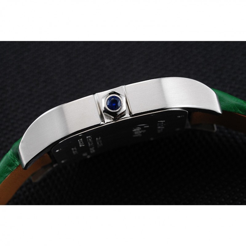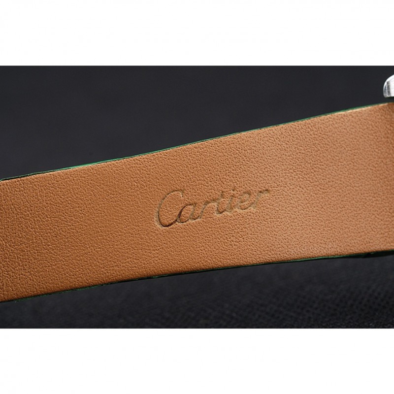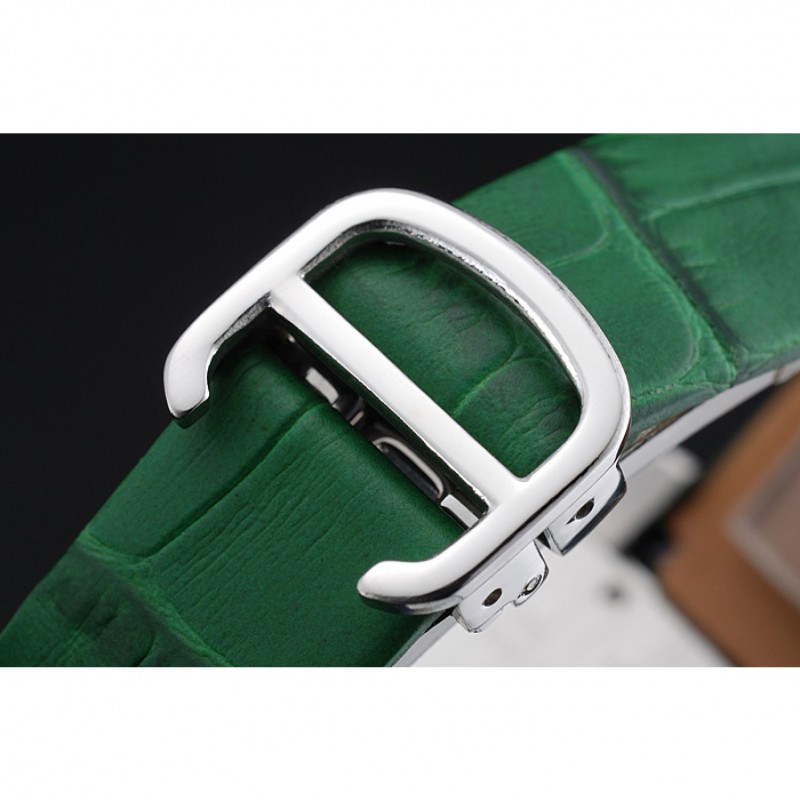 pulsera: correa de piel de cocodrilo verde calor Cartier en relieve con acero inoxidable pulido plegable en corchete