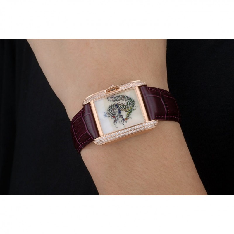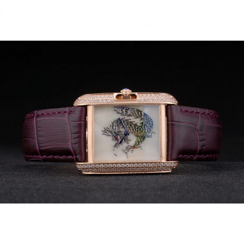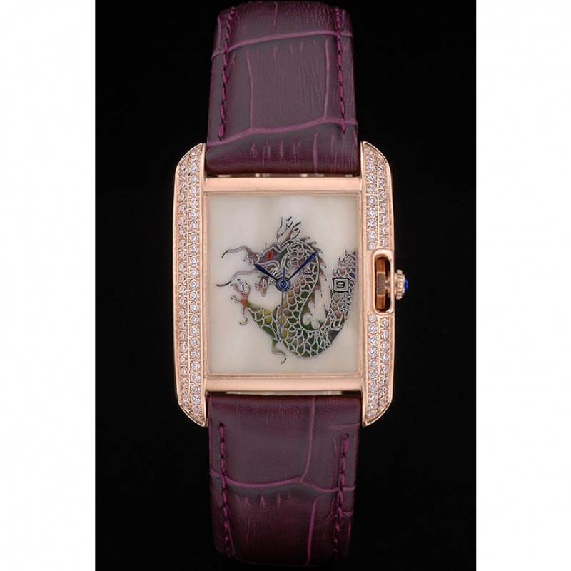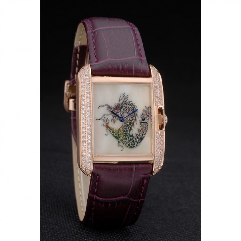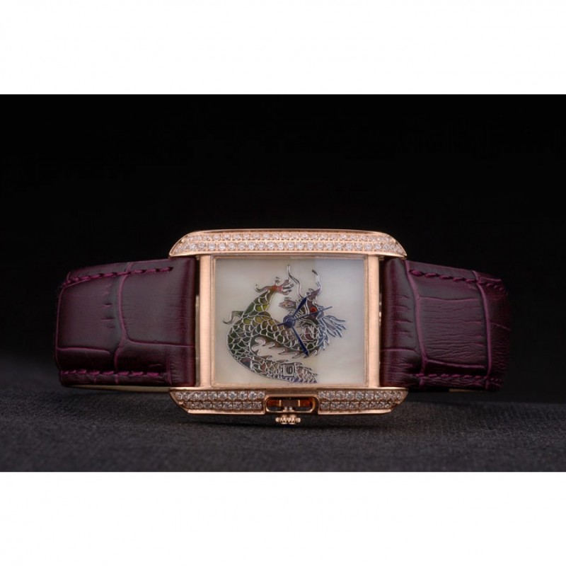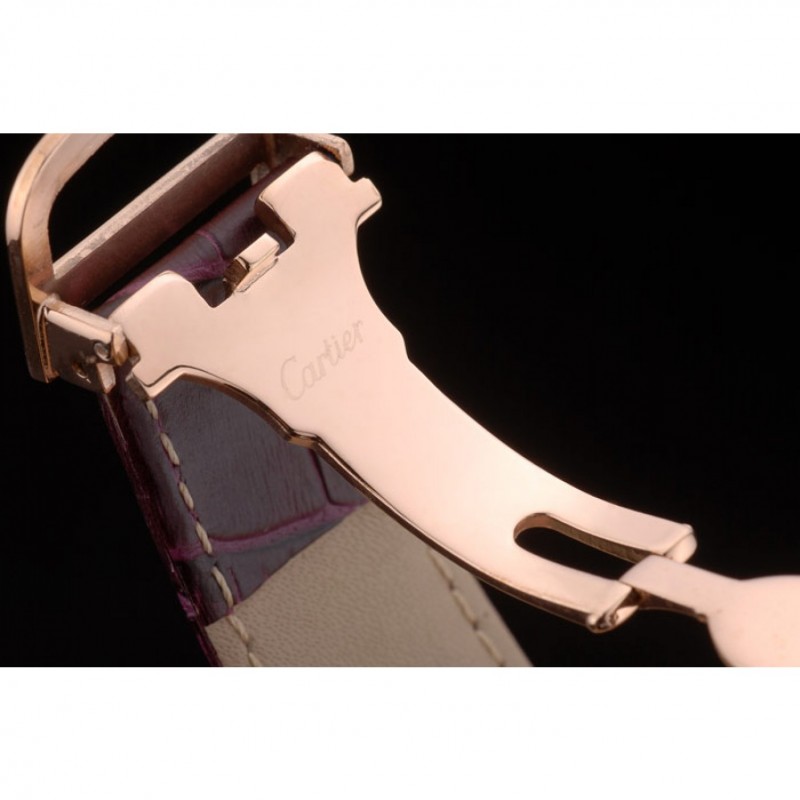 pulsera: en relieve correa de piel de cocodrilo púrpura calor Cartier rosa de 18 quilates chapado en oro plegable en cierre con hebilla