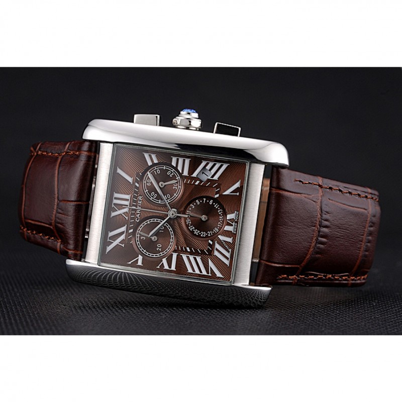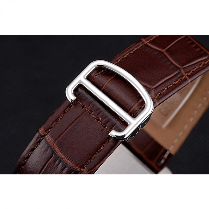 pulsera: correa de cuero croodile marrón calor Cartier en relieve con acero inoxidable pulido doblar-sobre hebilla de cierre