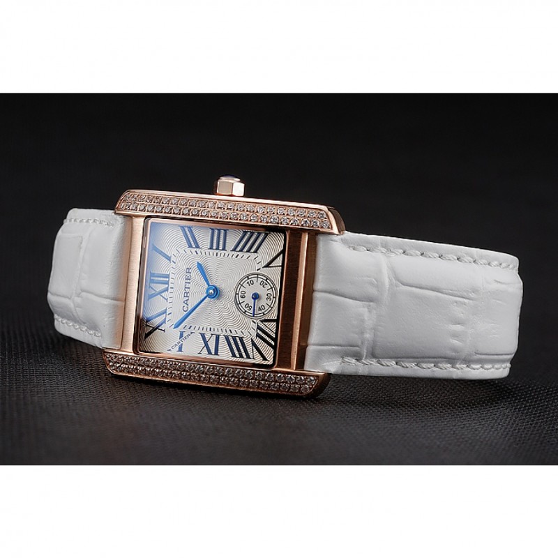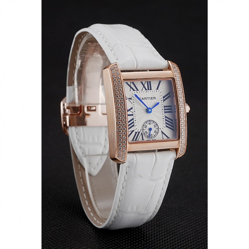 pulsera: en relieve correa de piel de cocodrilo blanco calor Cartier rosa de 18 quilates chapado en oro plegable en corchete