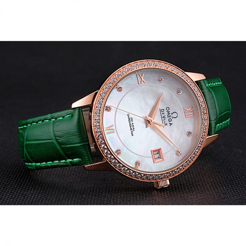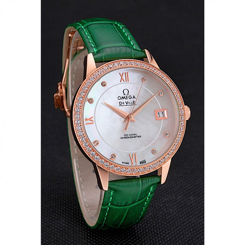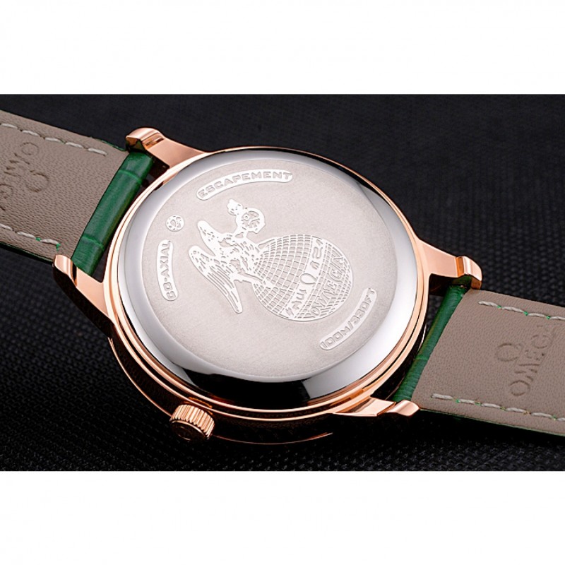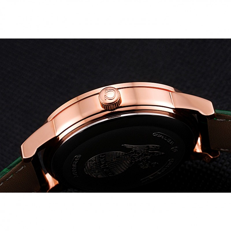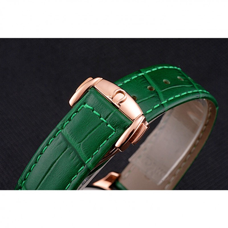 pulsera: logo y el calor Omega correa de piel de cocodrilo verde estampada con el logo de Omega 18k grabado de oro rosa plateado empuje de liberación del gancho del corchete