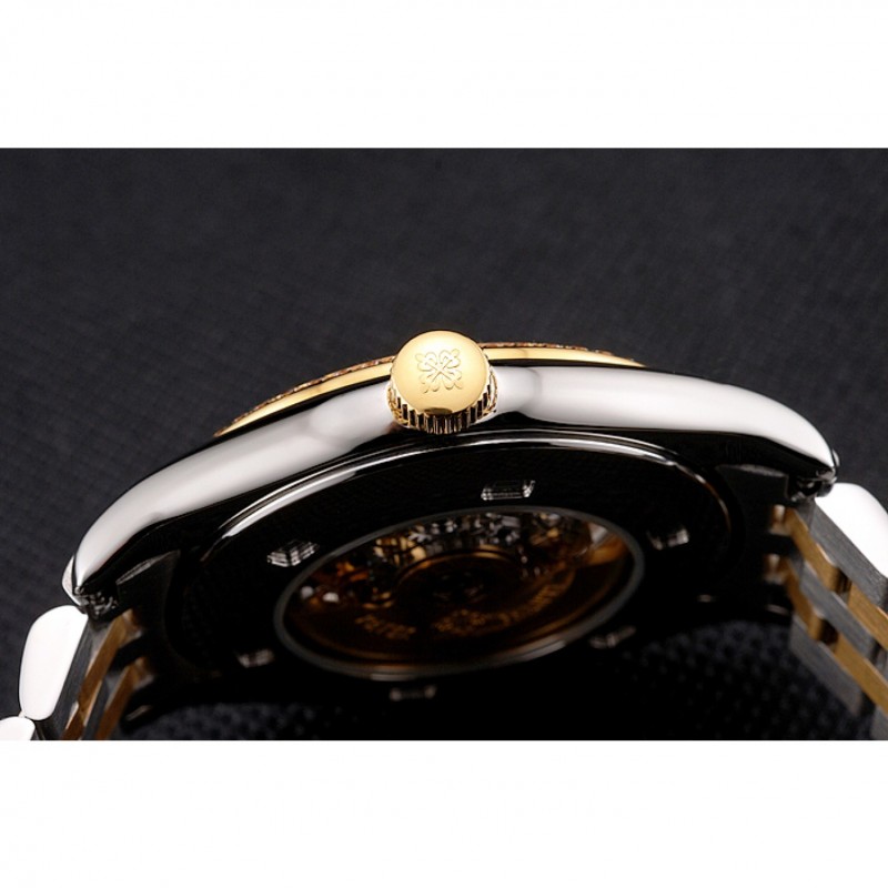 Volver: transparentes mecánicos-revelando pulido acero inoxidable complemento de vuelta con Patek Philippe y el logotipo grabado