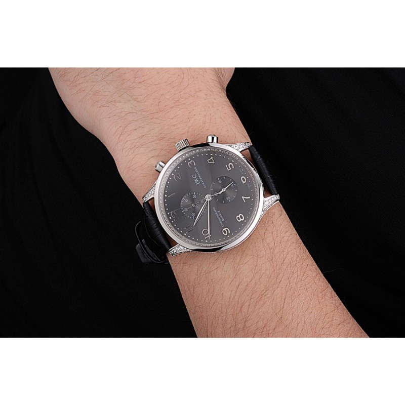 Inicio / IWC / CBI cronógrafo de Portugieser Negro Dial pulsera de cuero Negro
